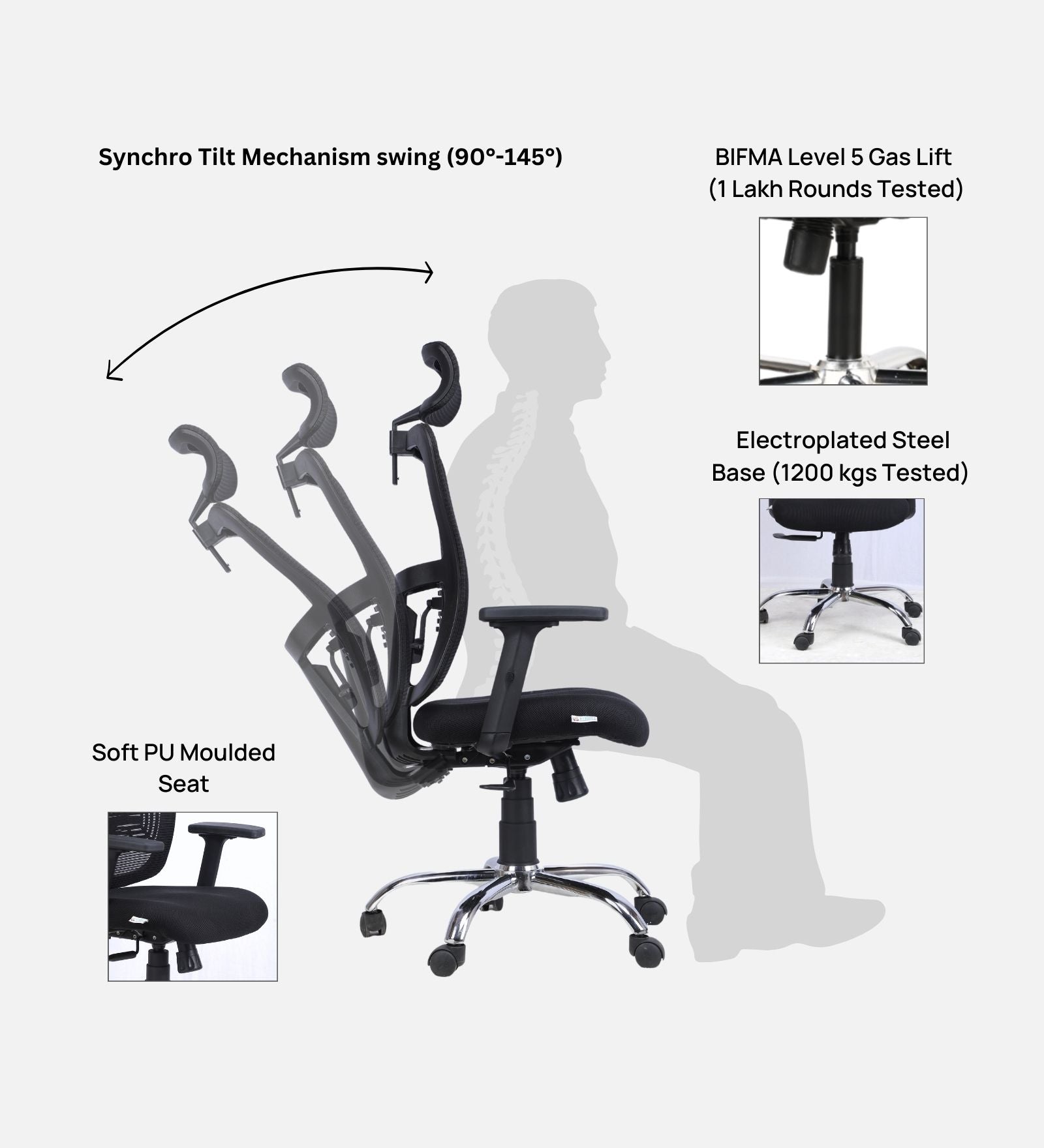 Ettorez Align-Pro Ergonomic Office Chair Black- Black