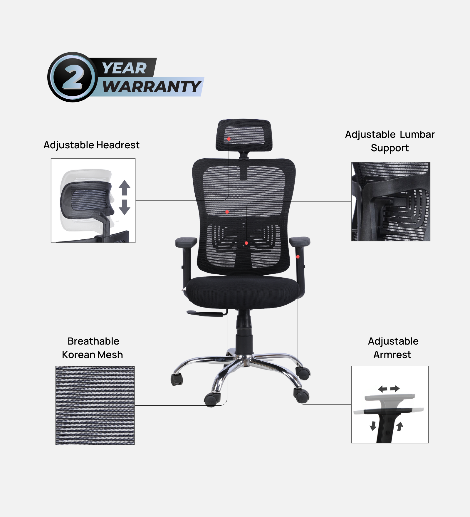 | Armrest | 2 way Adjustable (Up/Down, Front/Back |