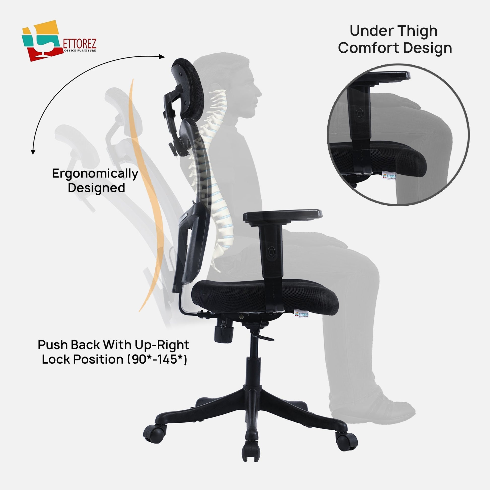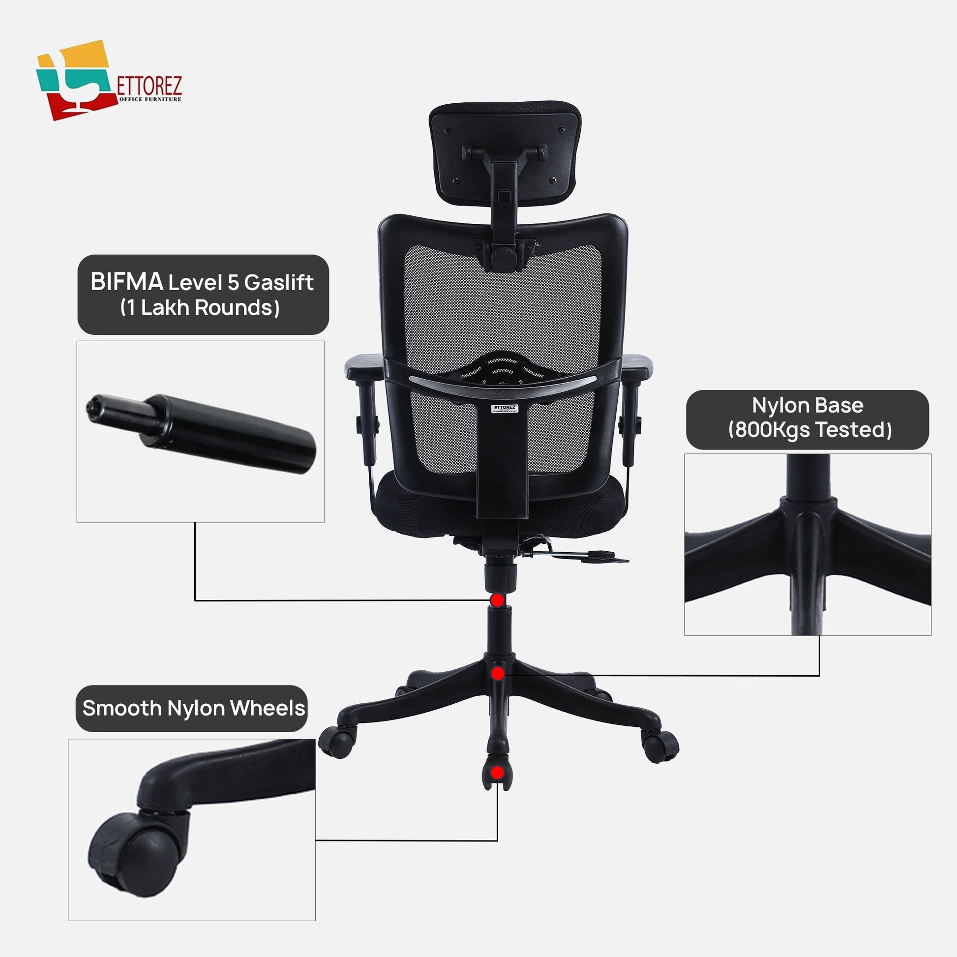 Ettorez CENTURY High Back Mesh Office Chair with Headrest