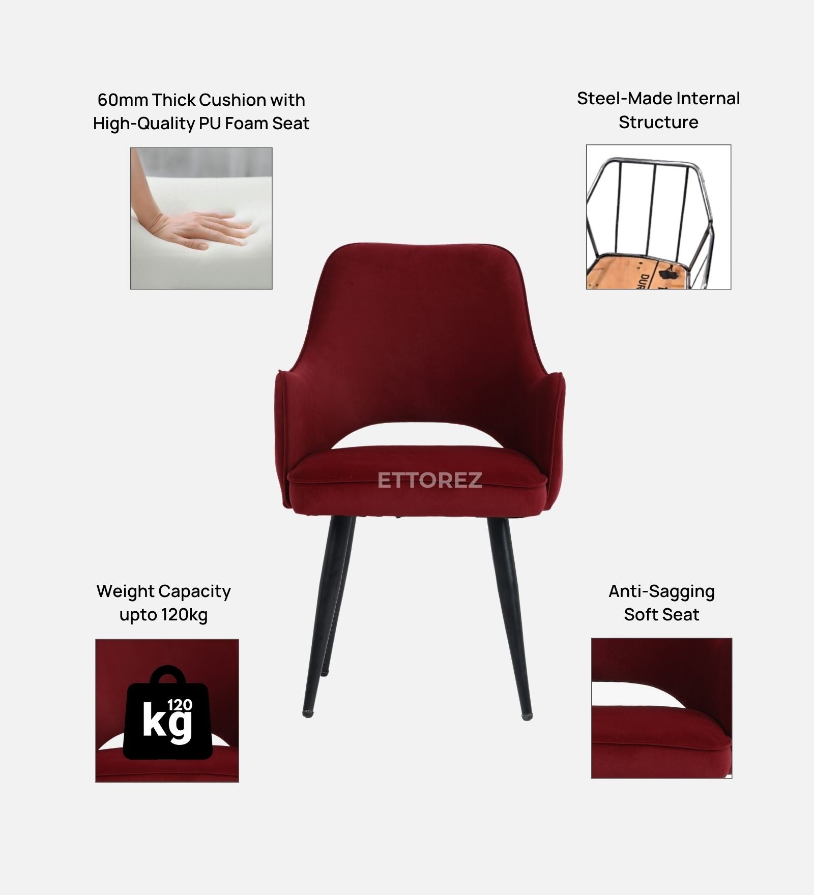 Ettorez ELEGANCE-WINE/MEHROON Modern/Unique Bedroom Accent Chair