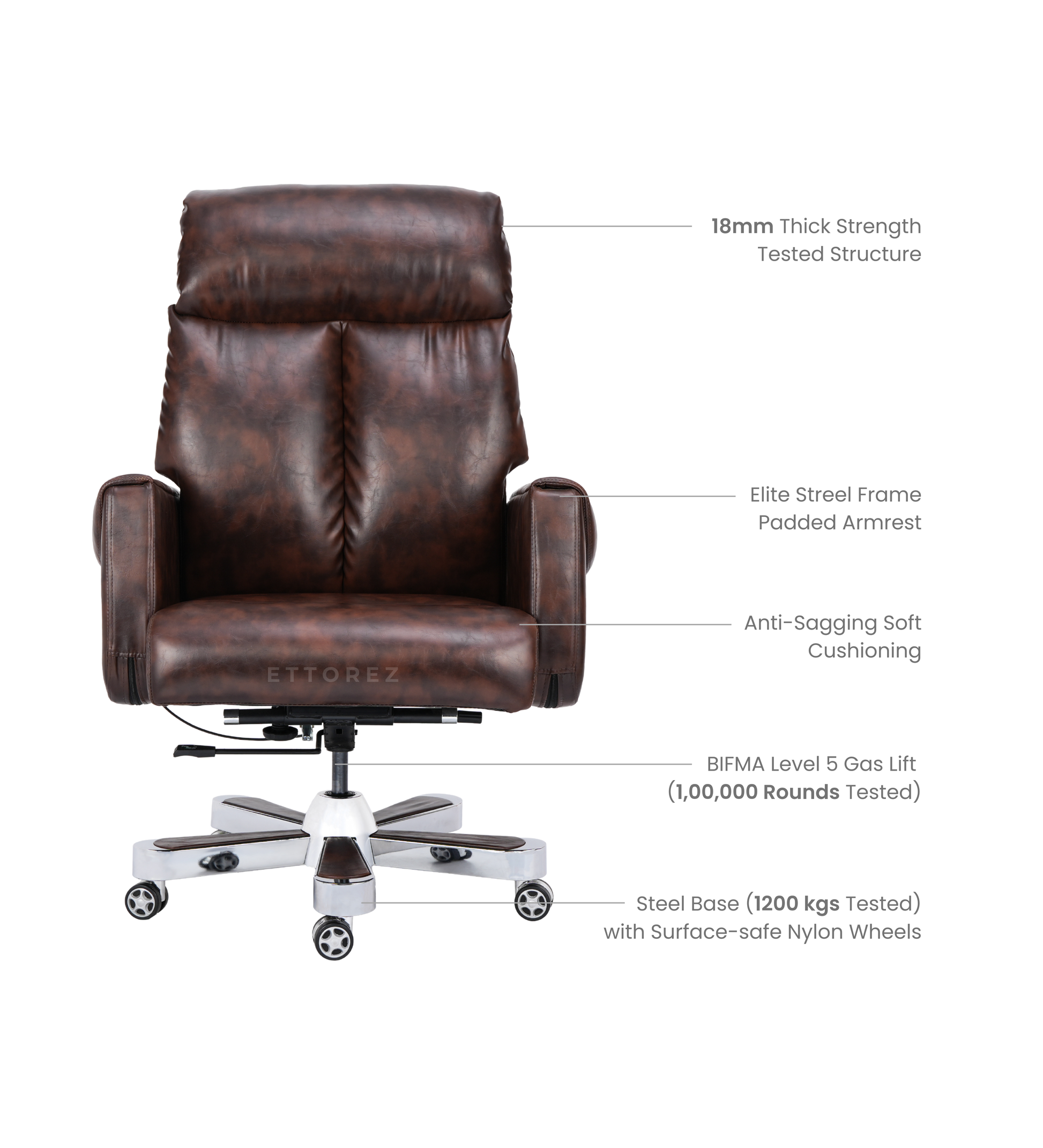 Ettorez Endeavour Brown High Back Leatherette Office Chair