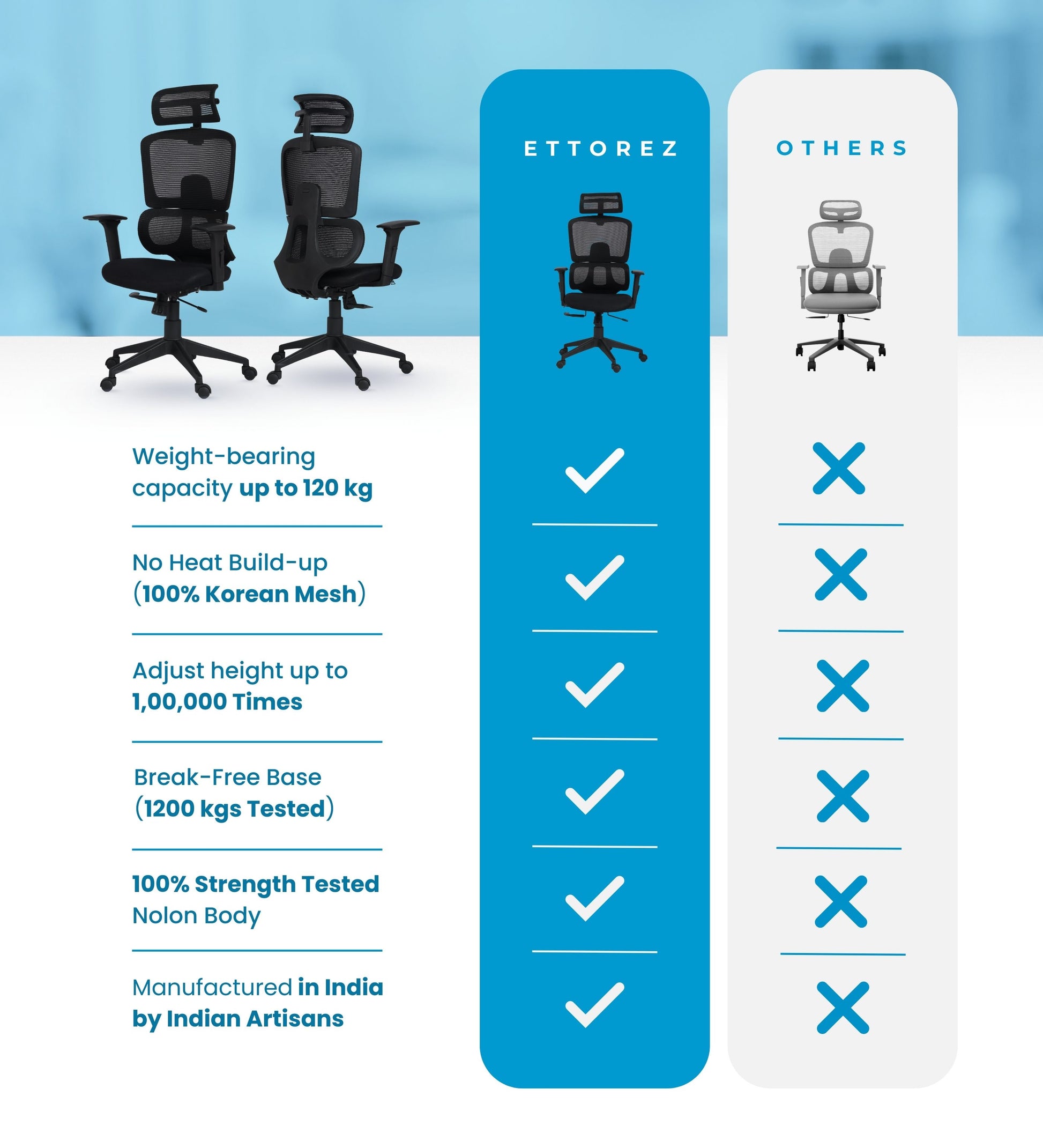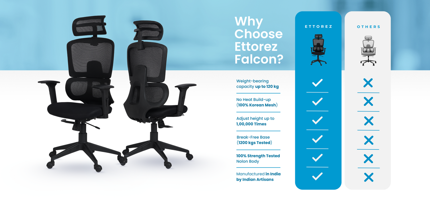 Ettorez FALCON Black High Back Ergonomic Mesh Office Chair