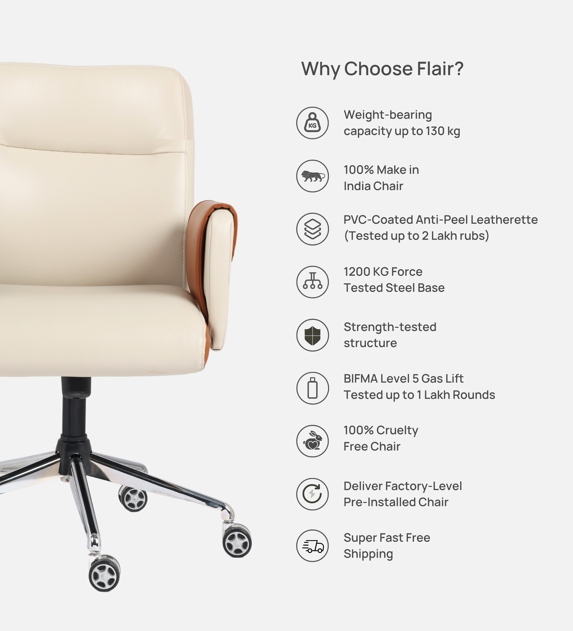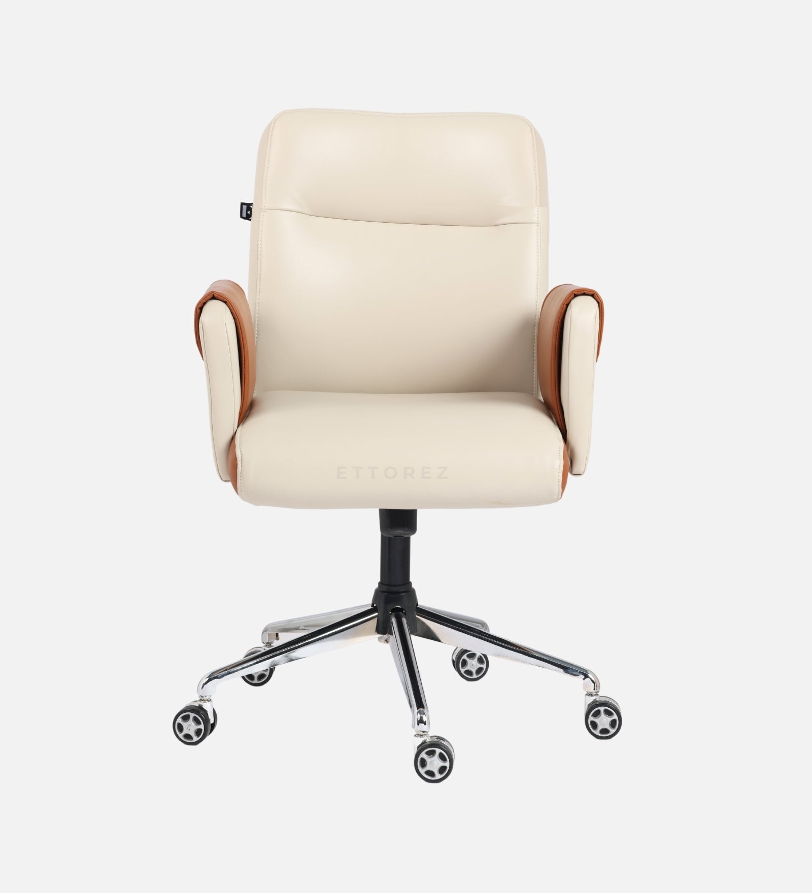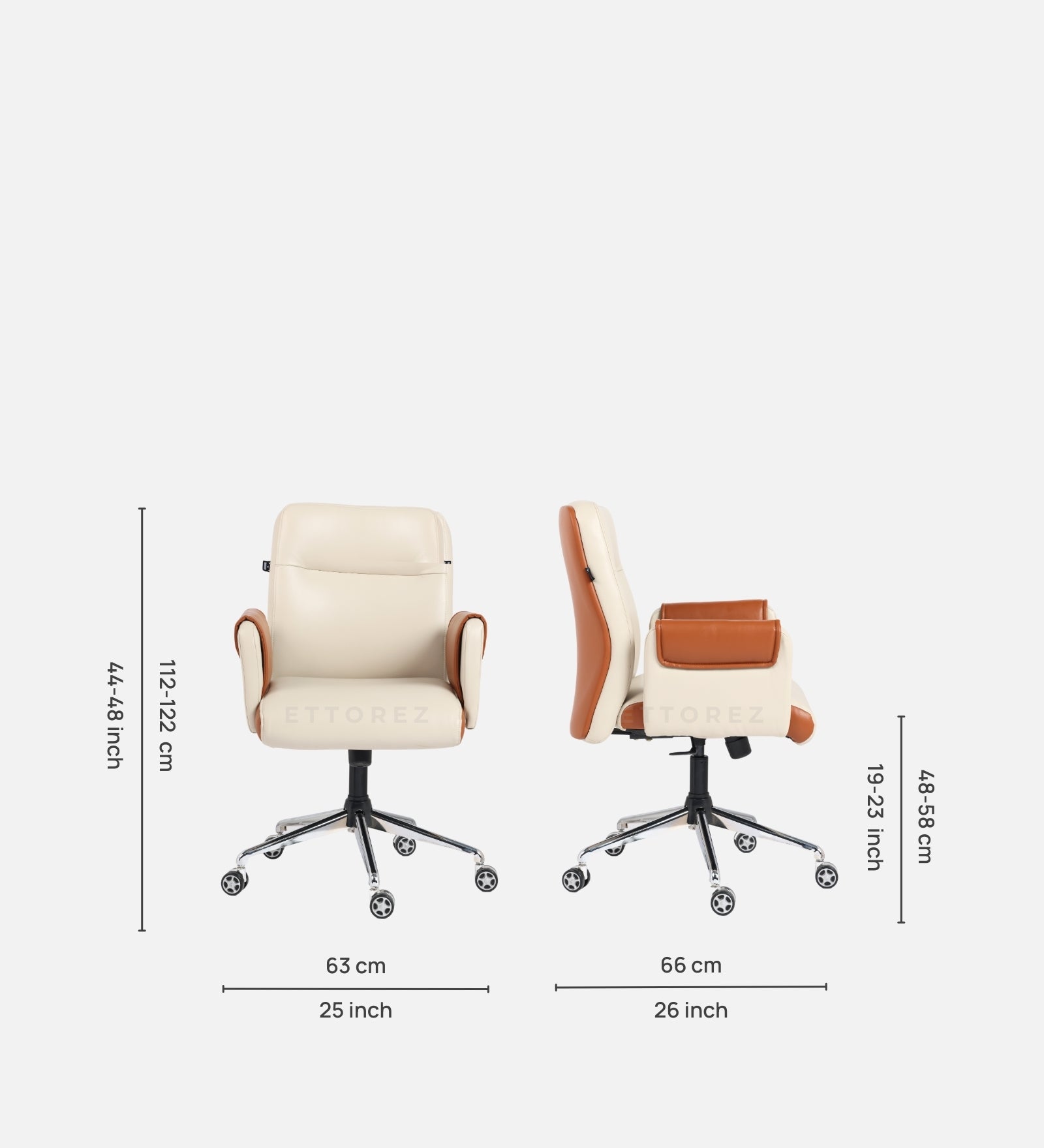 Ettorez Flair Ultra Premium Leatherette Office Chair- Tan and cream