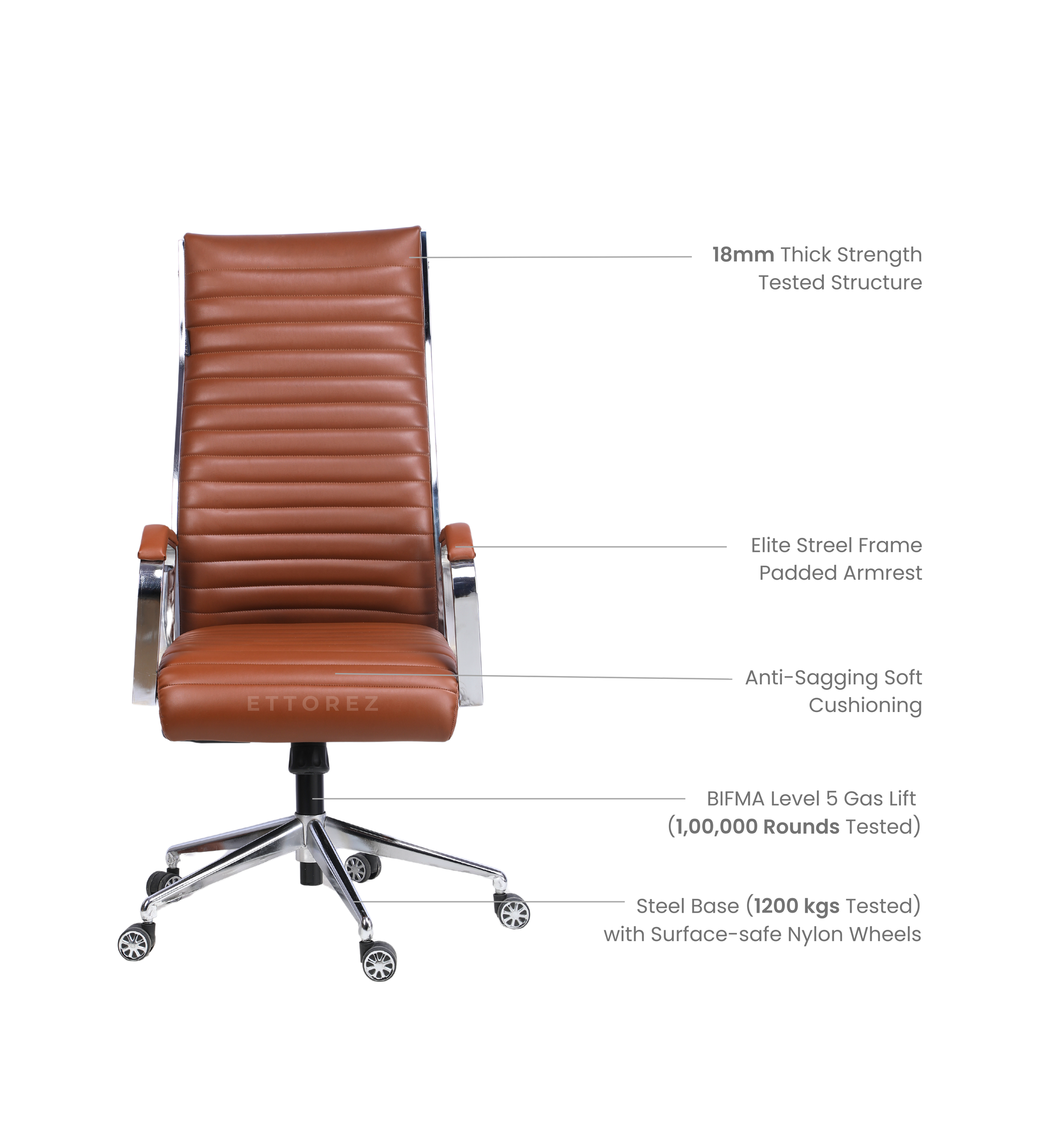 | Base | Chrome Steel Base (1200 KG Tested) |
