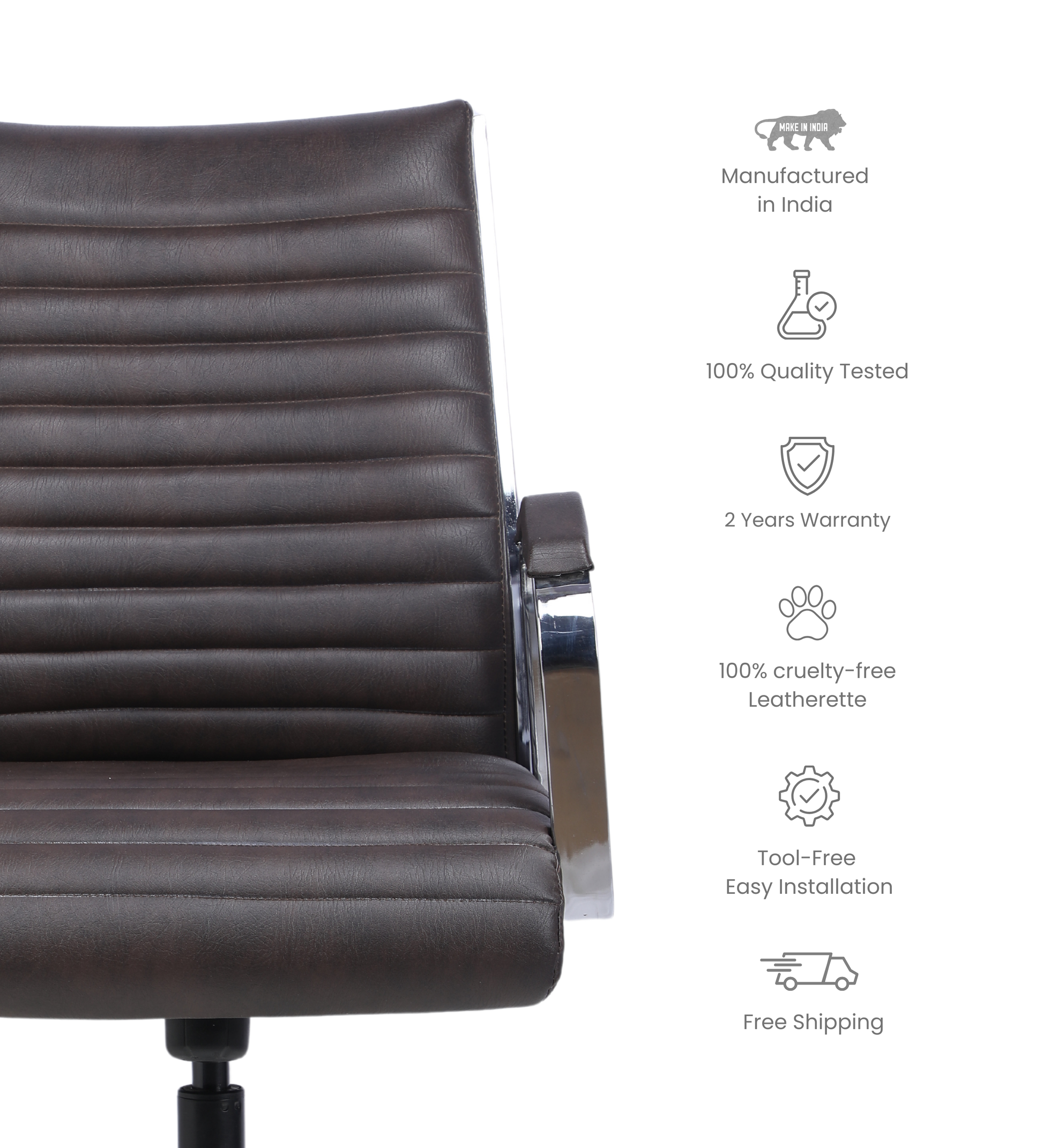 Ettorez GLOBAL LB Stylish Sleek Leatherette Office Chair- Brown