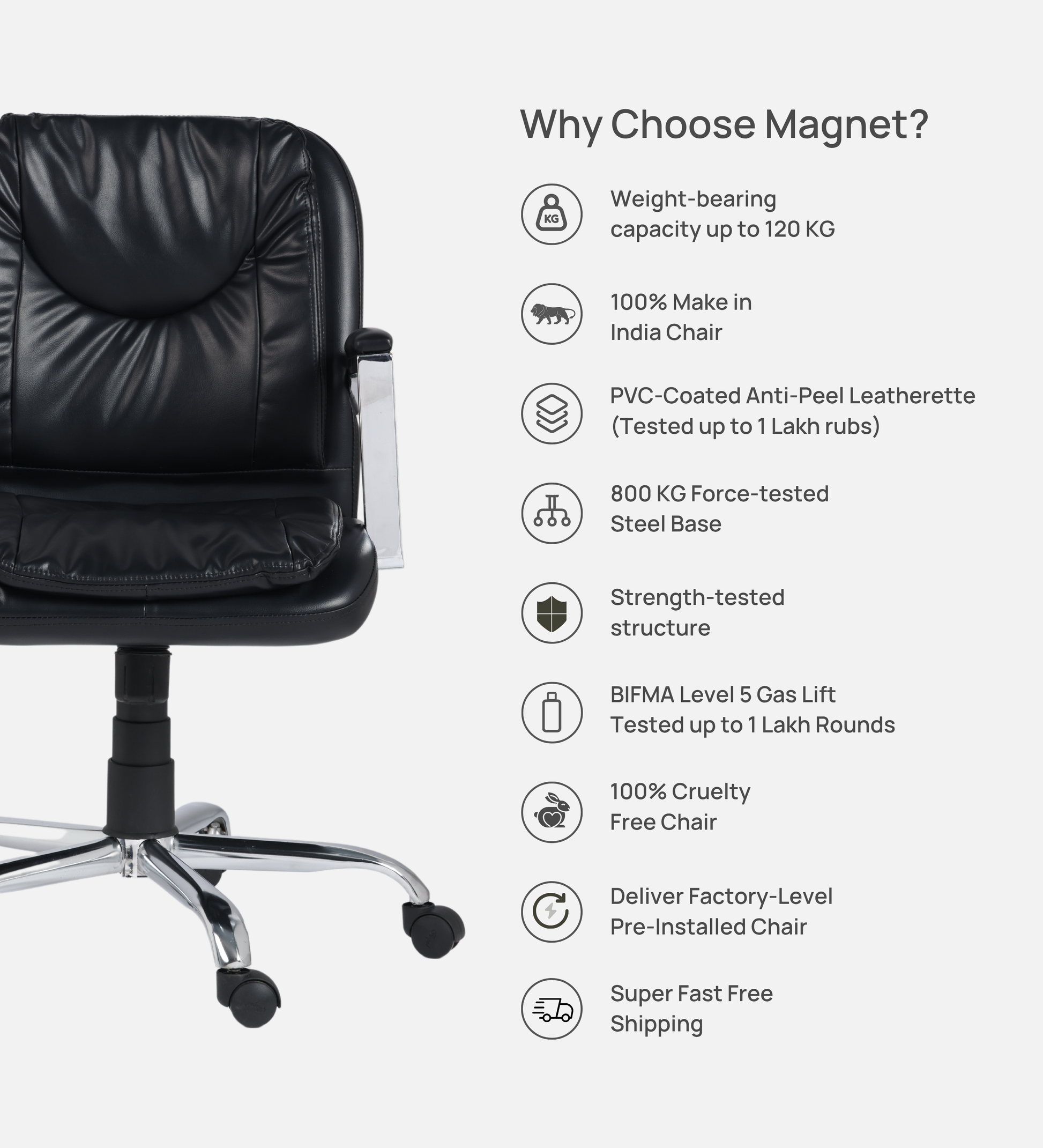Ettorez Magnet Ultra Premium Leatherette Office Chair- Black