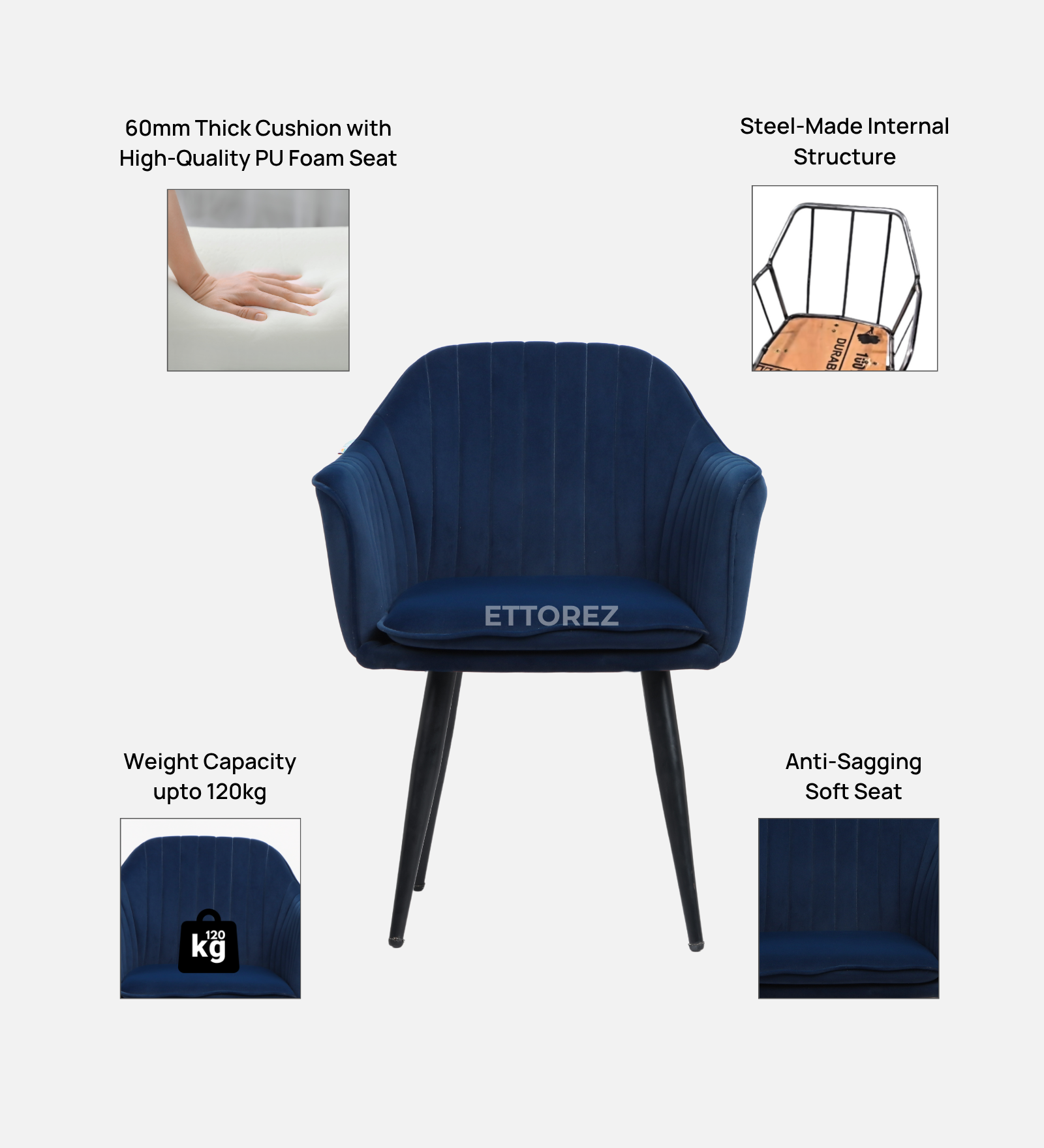 | Legs | MS Steel (Powder Coated) |