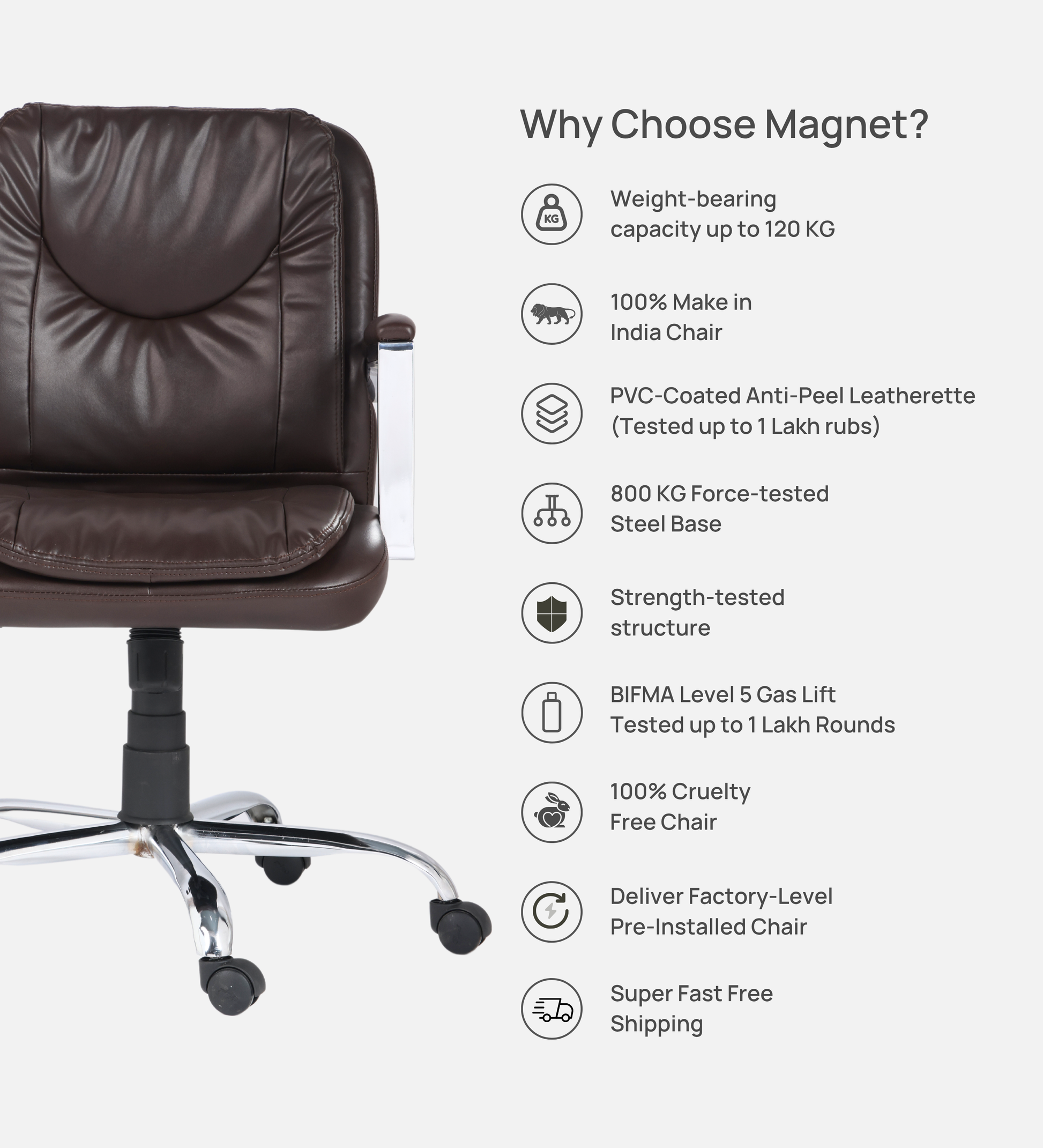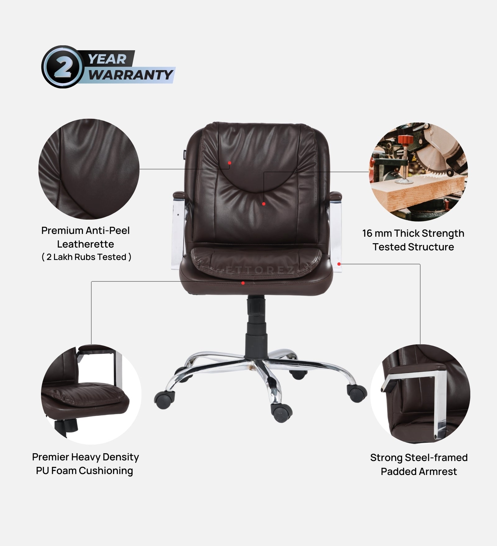 Ettorez Magnet Ultra Premium Leatherette Office Chair- Brown