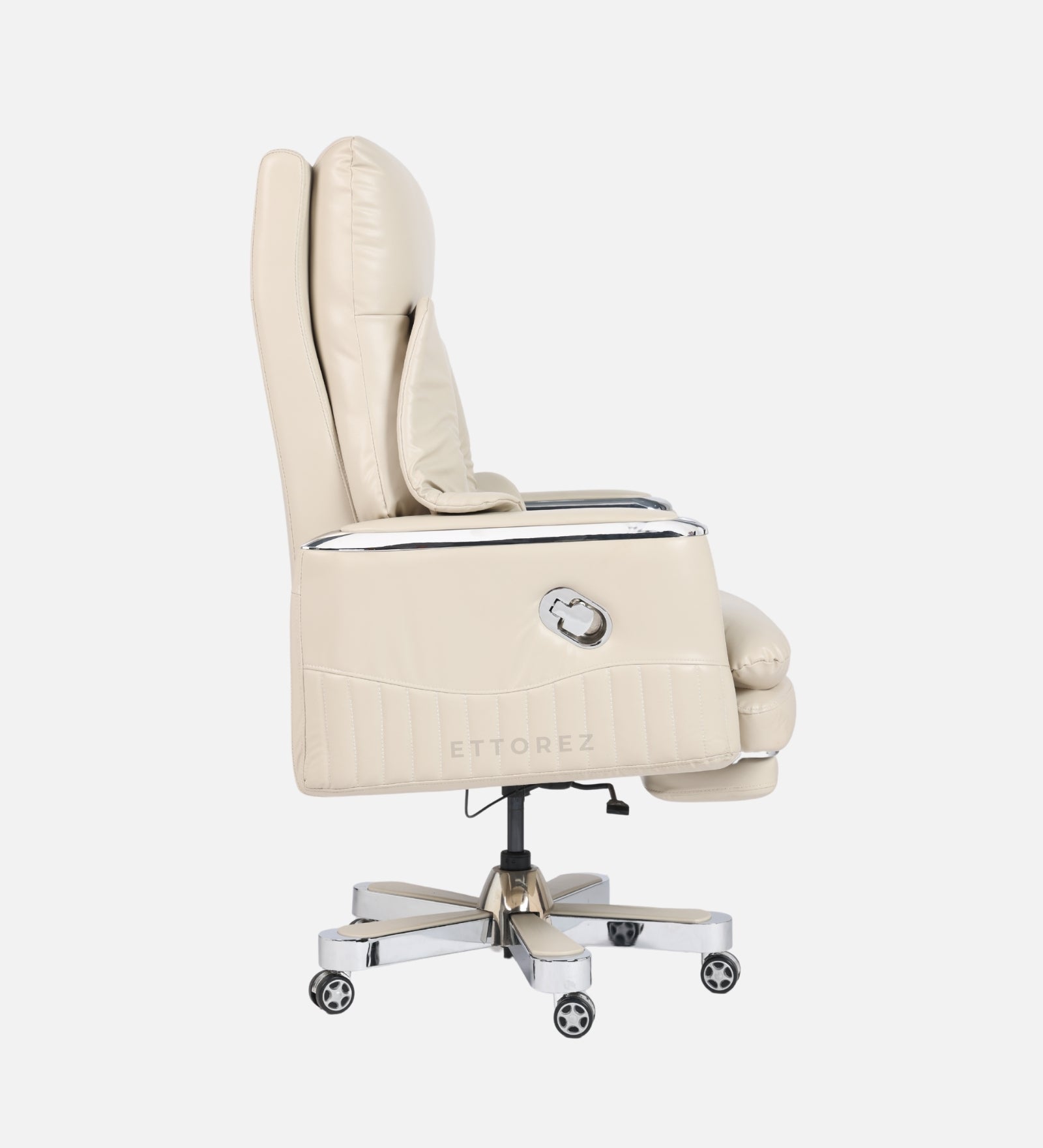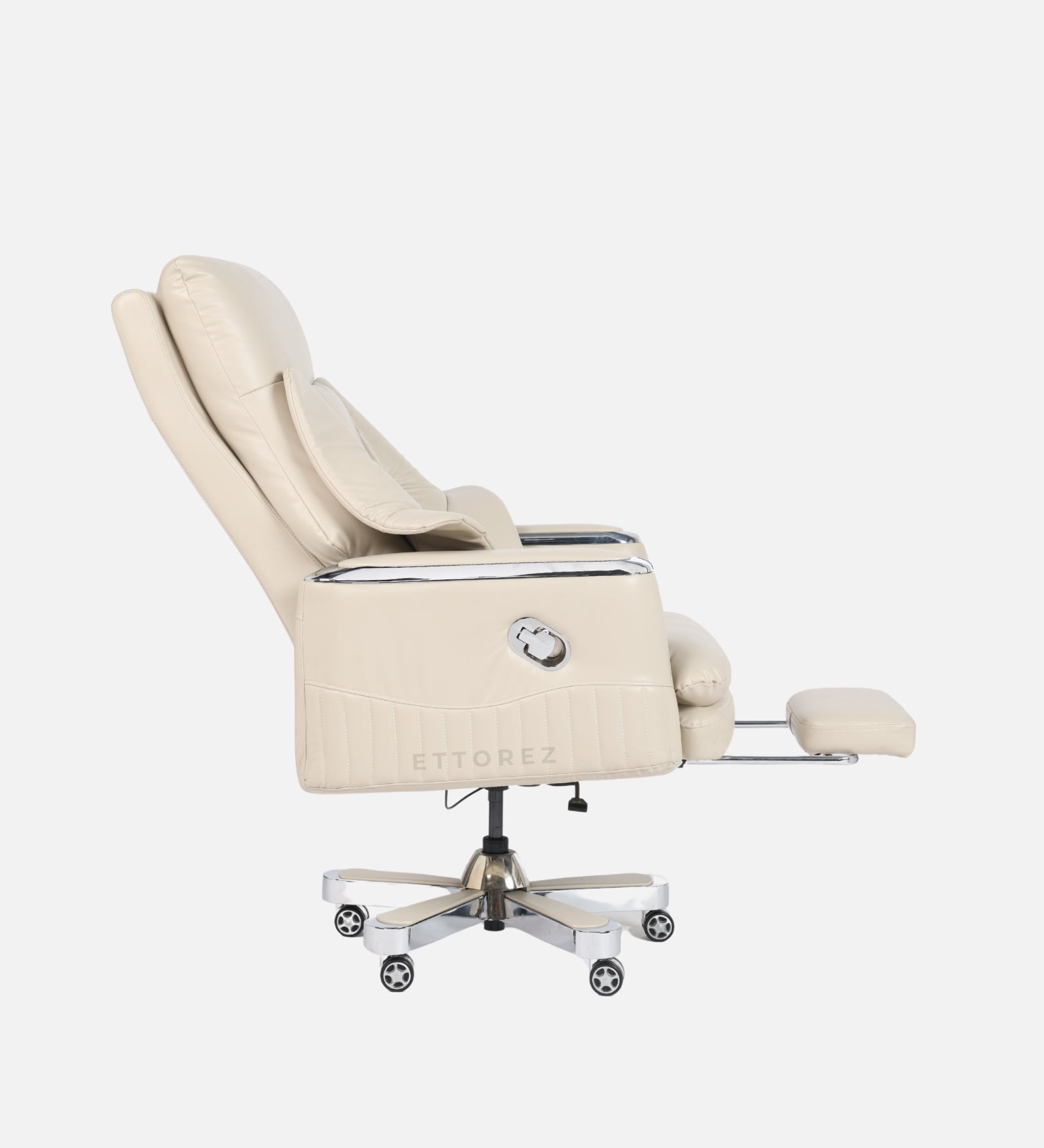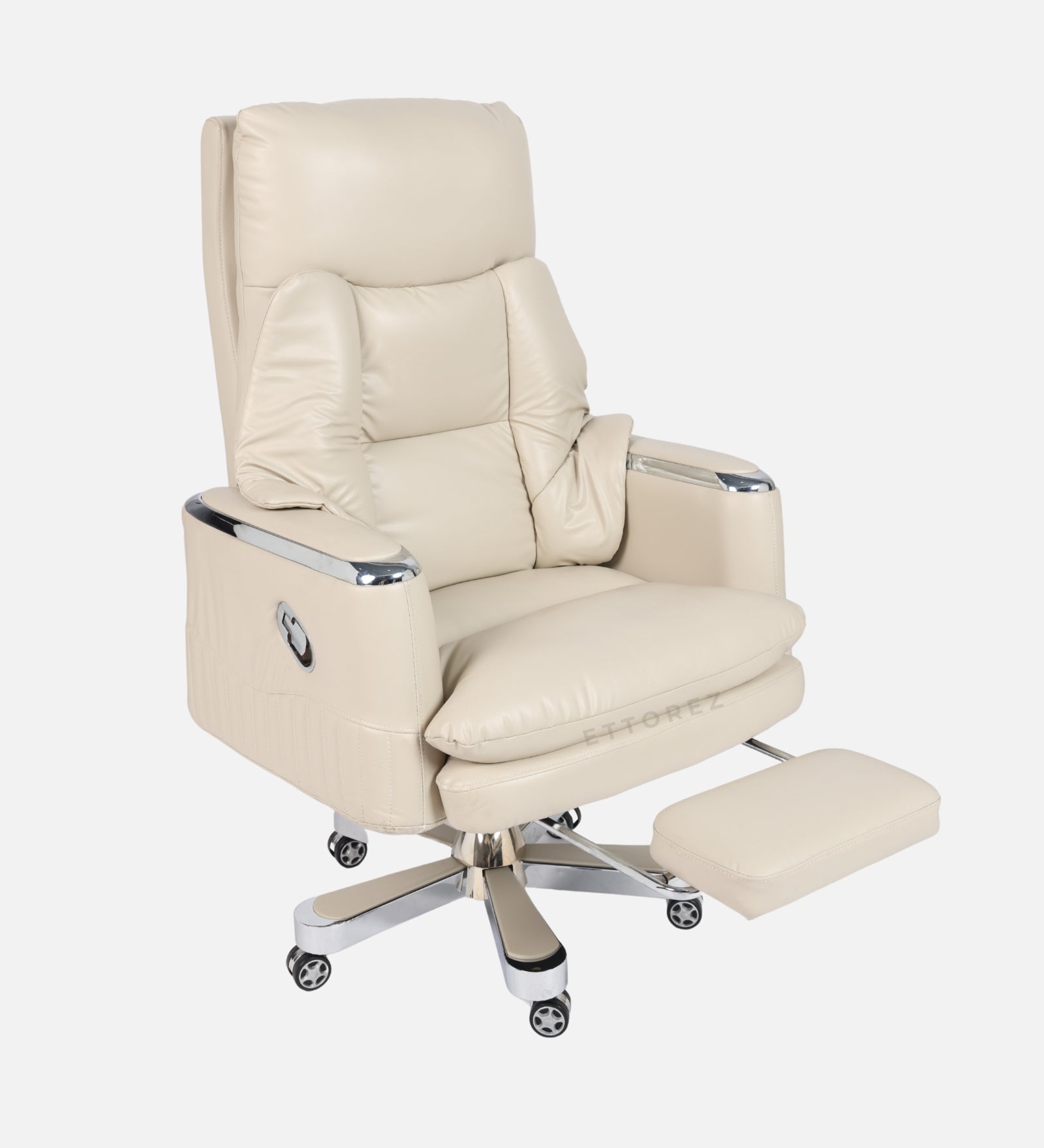 Ettorez Magnus High Back Ultra Premium Leatherette Office Recliner- Cream