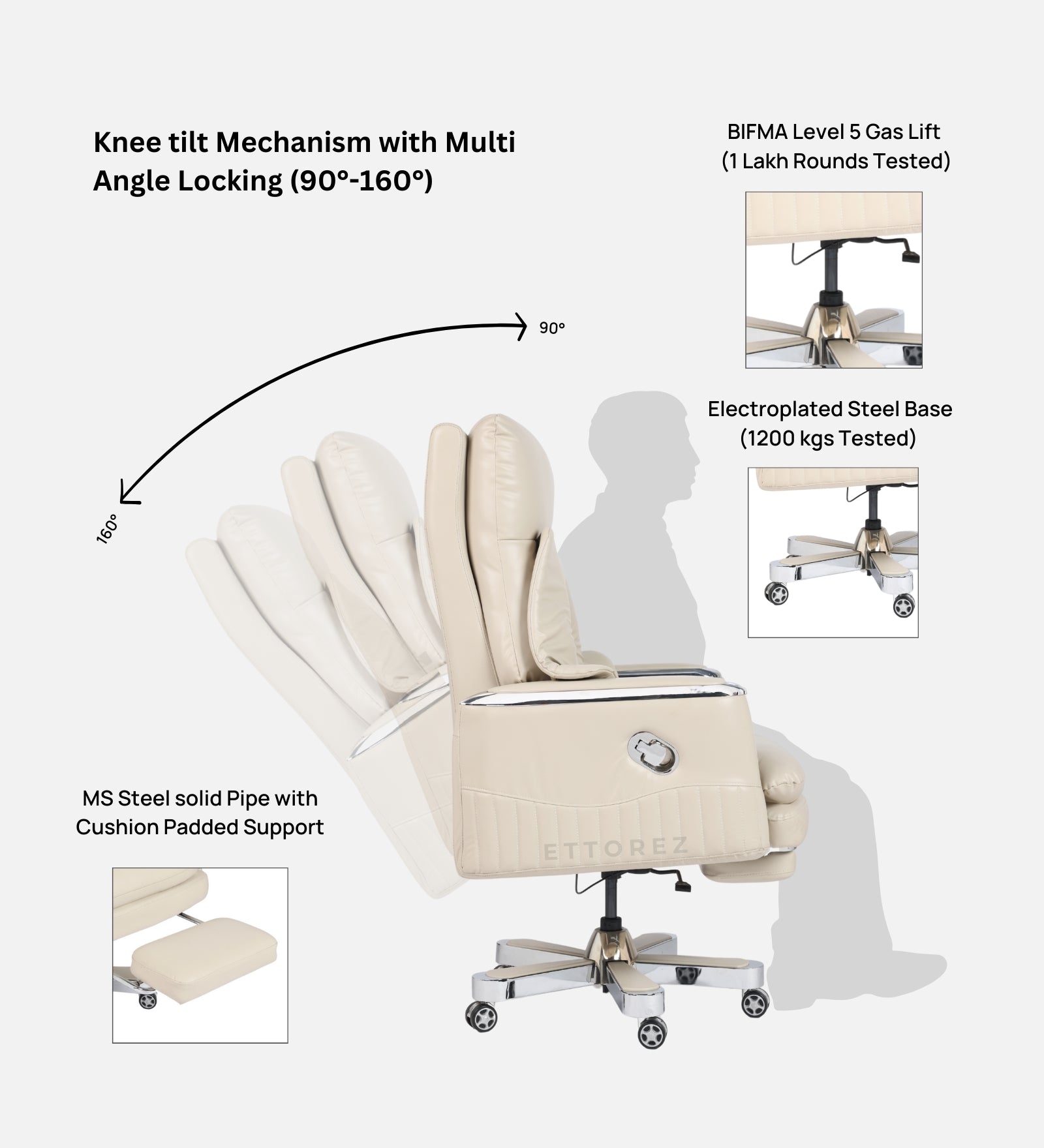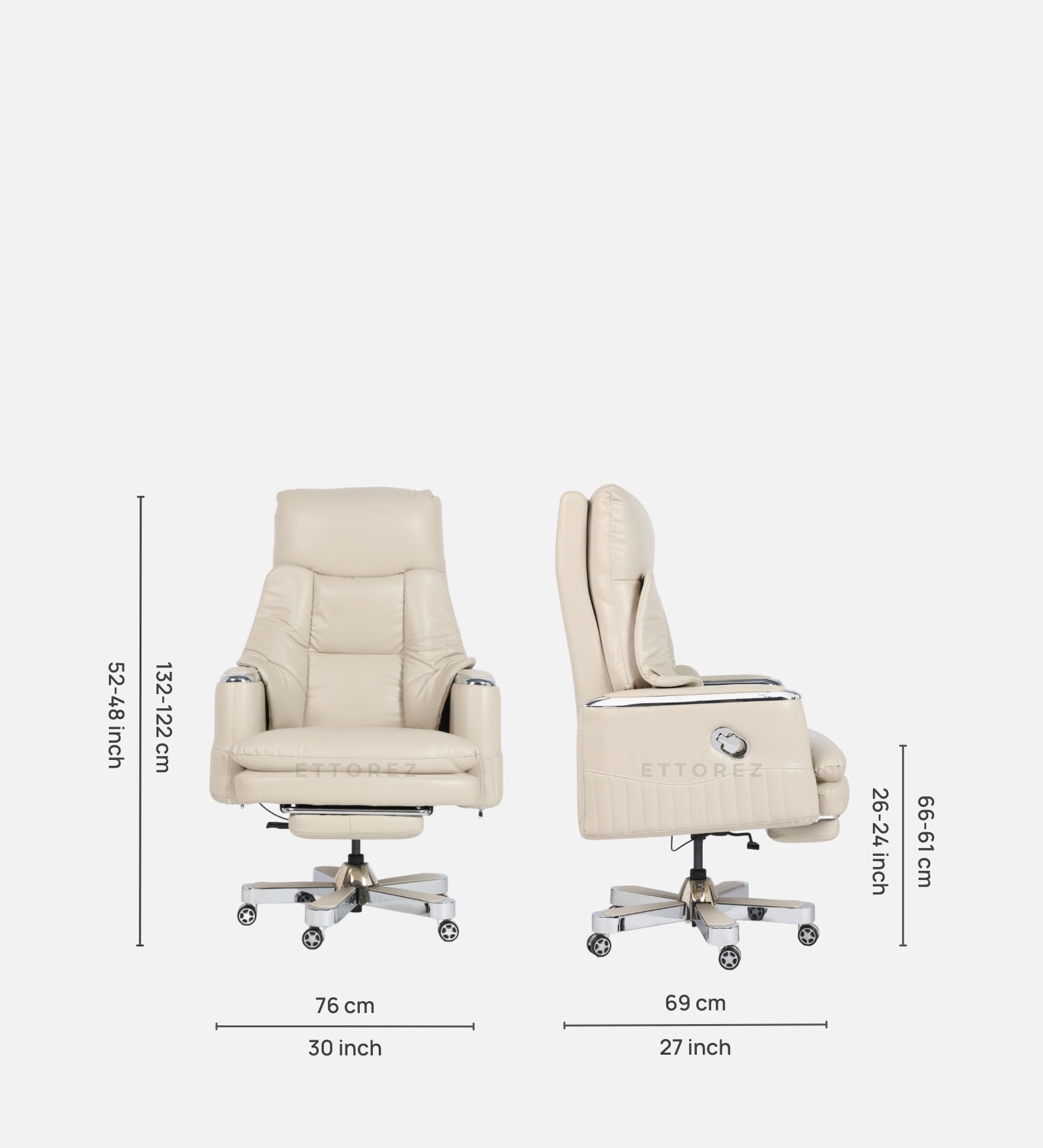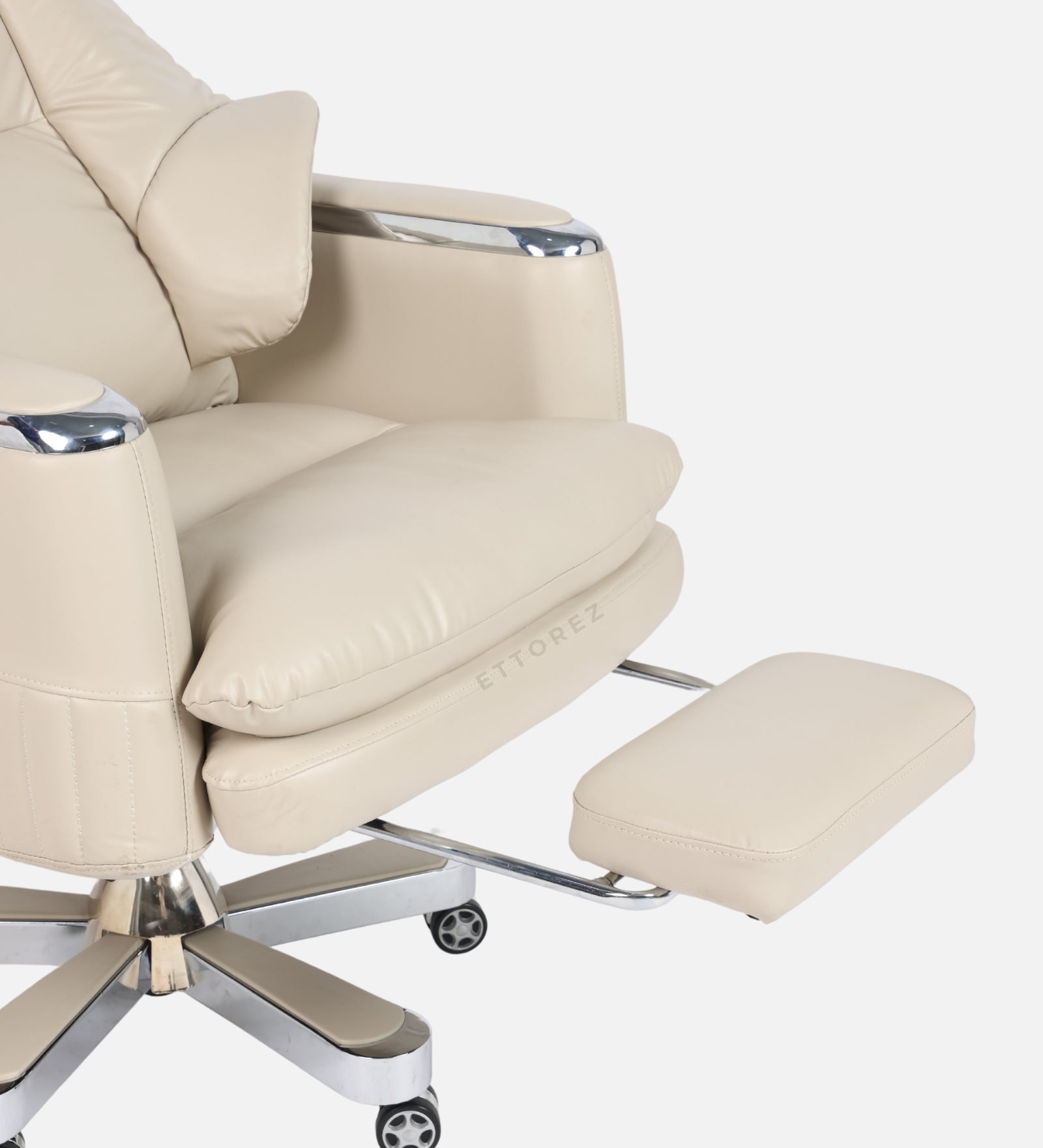 Ettorez Magnus High Back Ultra Premium Leatherette Office Recliner- Cream