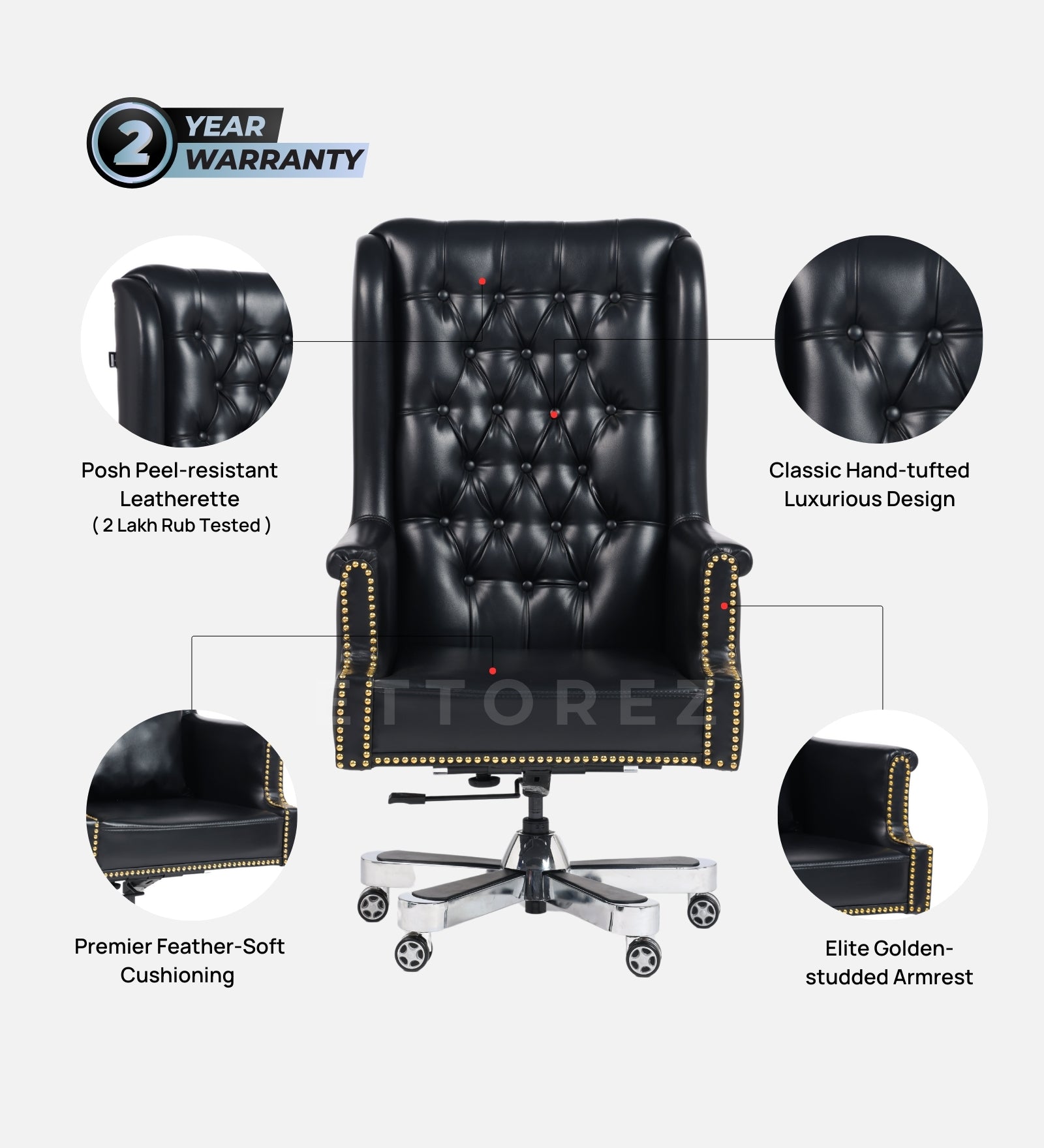 Ettorez Maharaja High Back Ultra Premium Leatherette Office Chair- Black