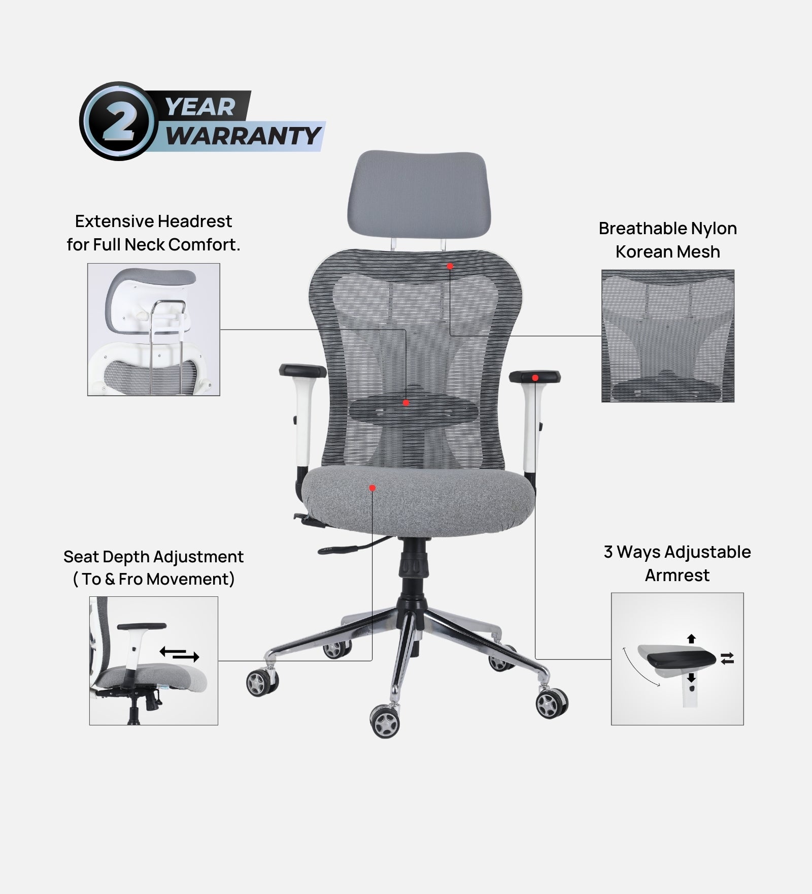 | Back Upholstery | Original Korean Mesh | ||