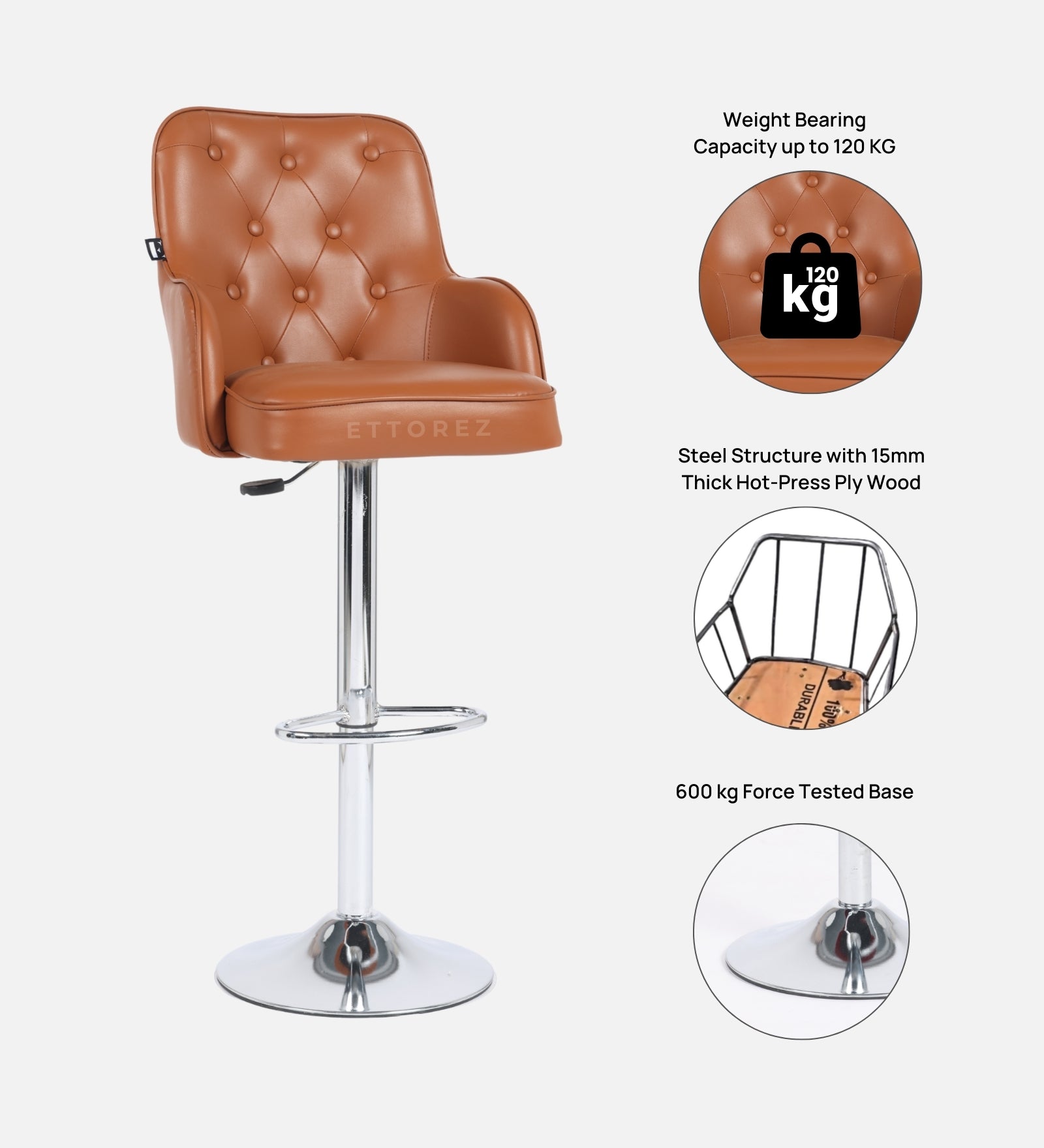 Ettorez Meteor Solid Steel Bar and counter stool Tan