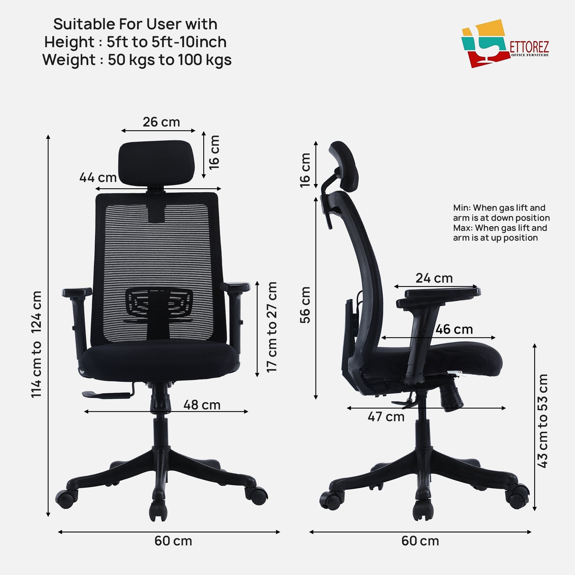 | Customization | Yes (Seat Fabric can be customised) | Ideal User's Height Reference | 5'2"-5'10" | Ideal User's Weight Reference | 50-100kg |