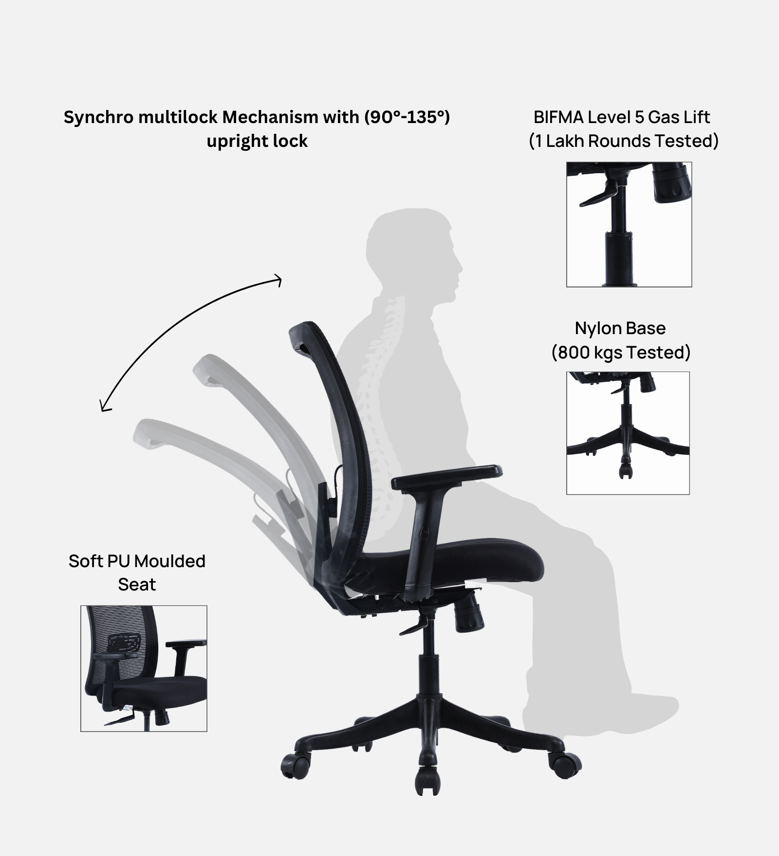 | Customization | Yes (Seat Fabric can be customised) | Ideal User's Height Reference | 5'2"-5'10" | Ideal User's Weight Reference | 50-100kg |