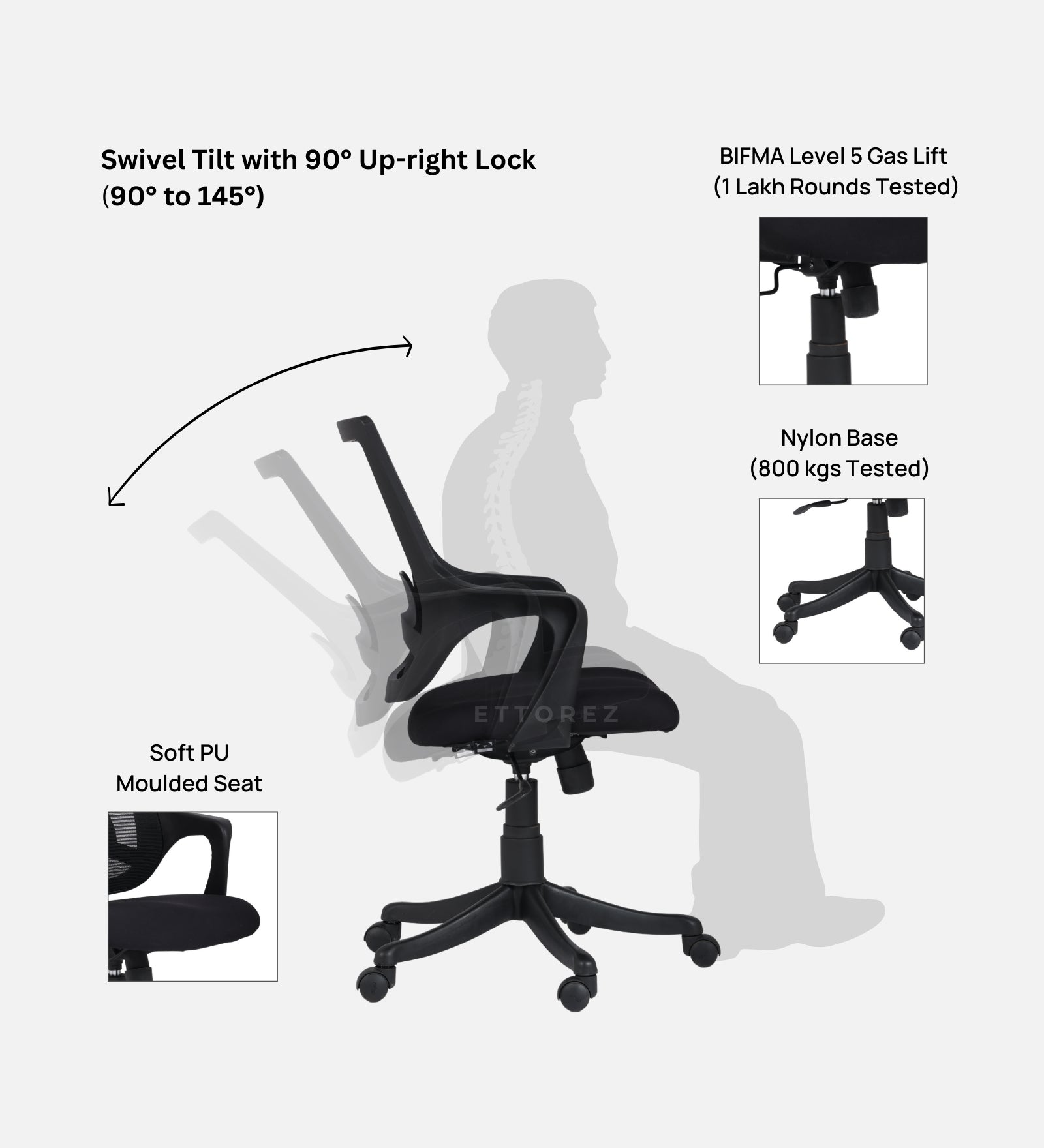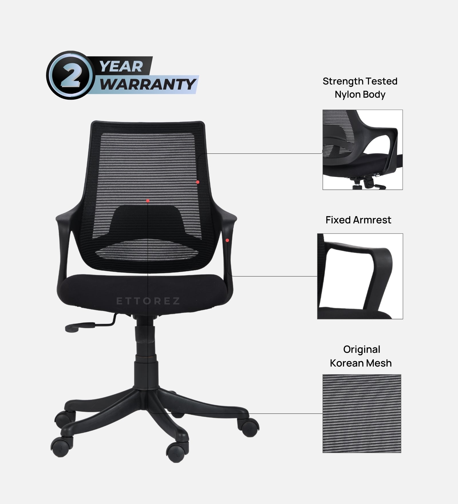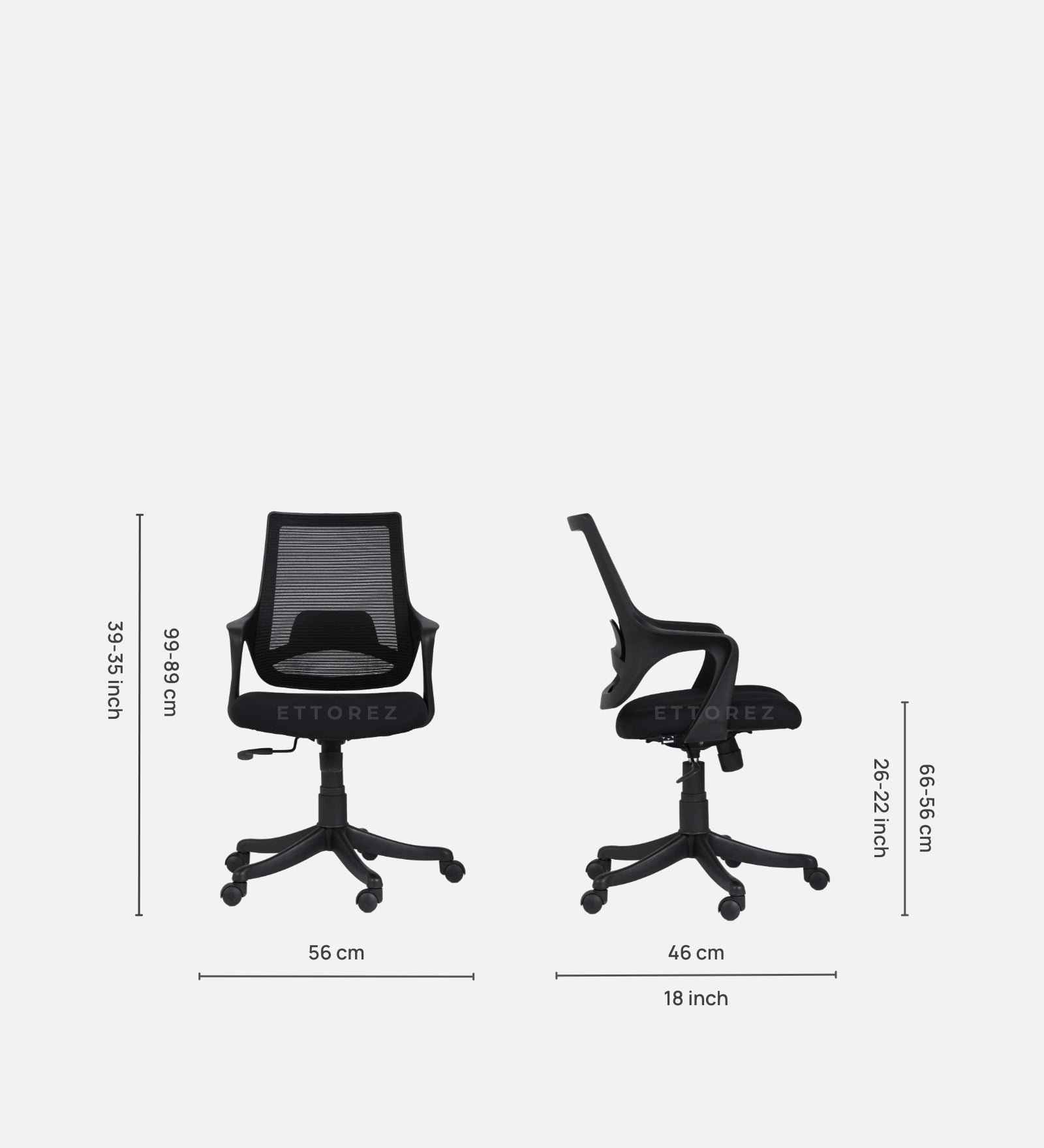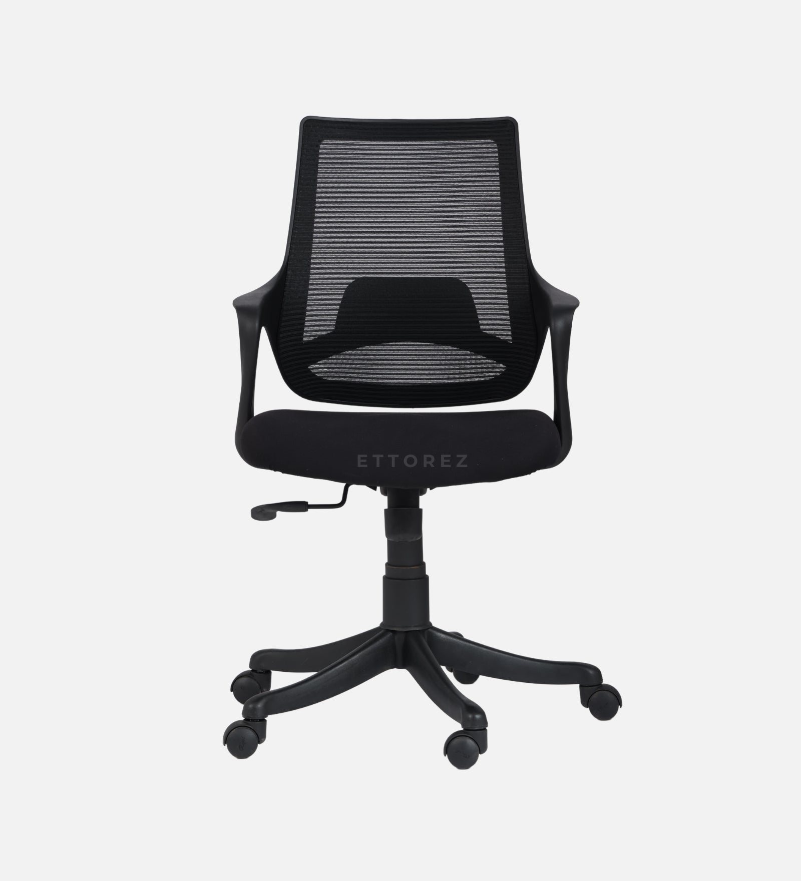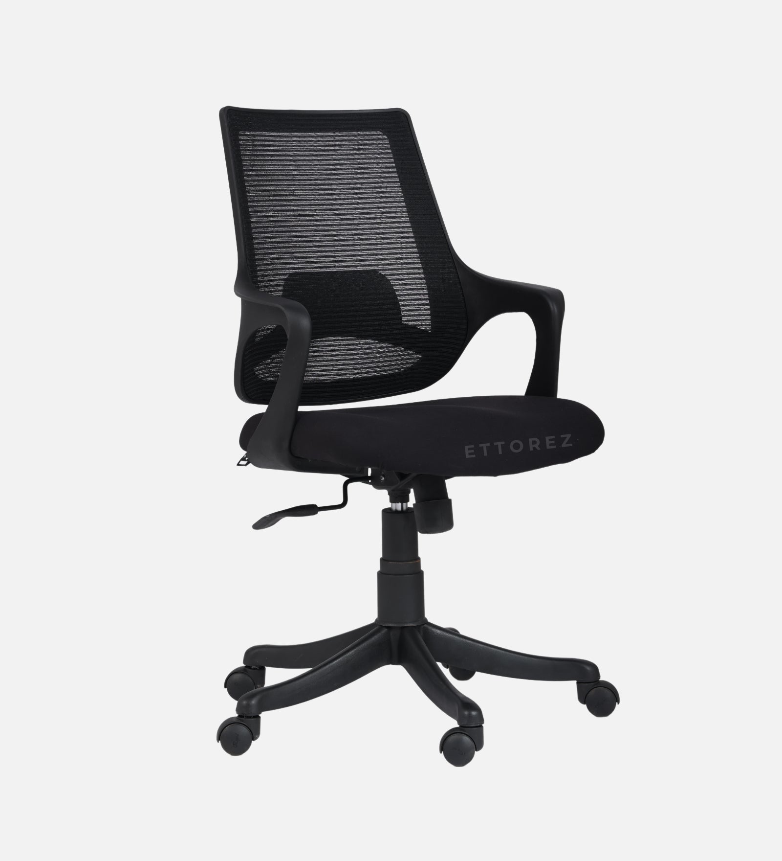 Ettorez Neo Black Mid Back Mesh Revolving Chair with Fixed Armrest