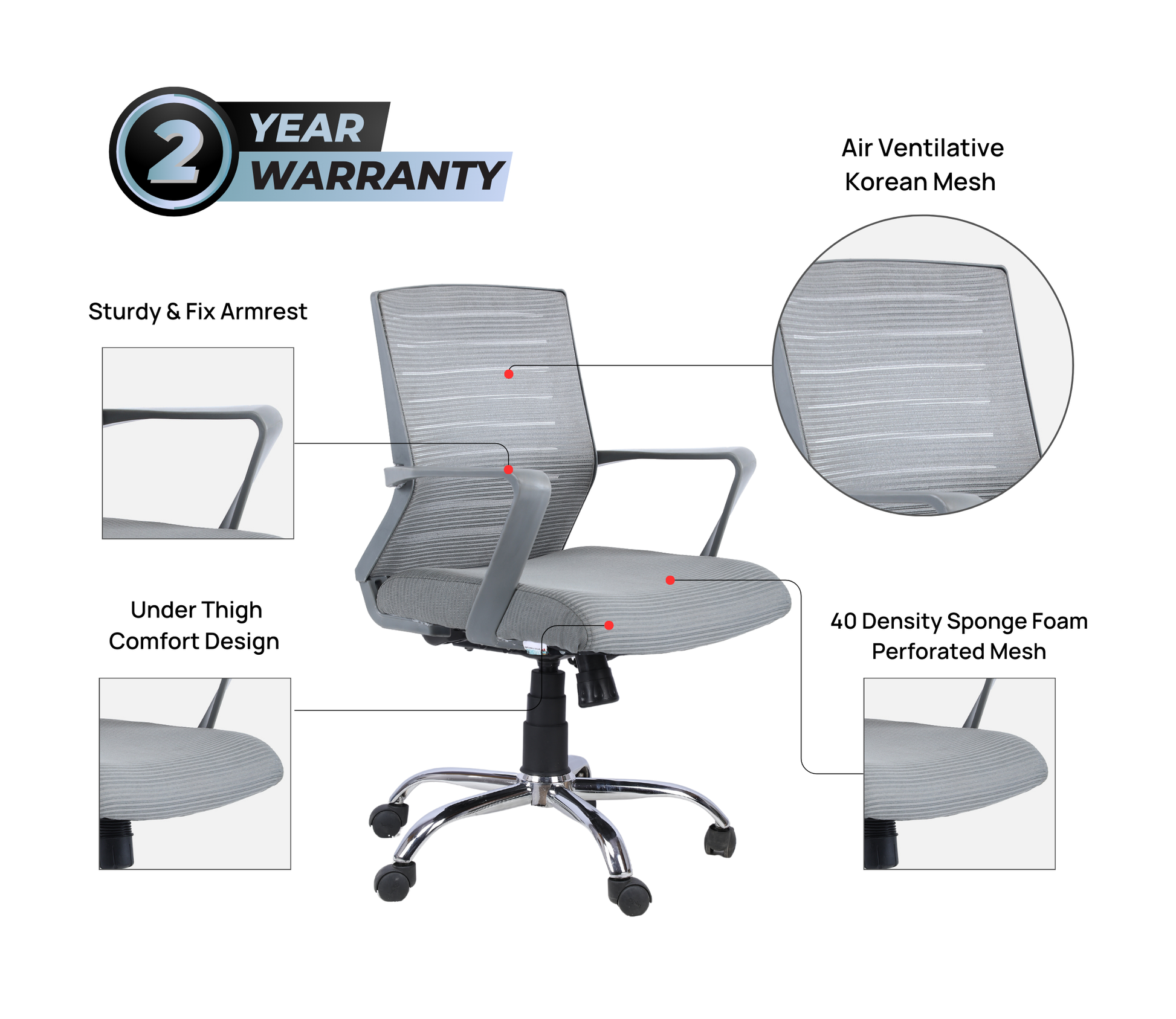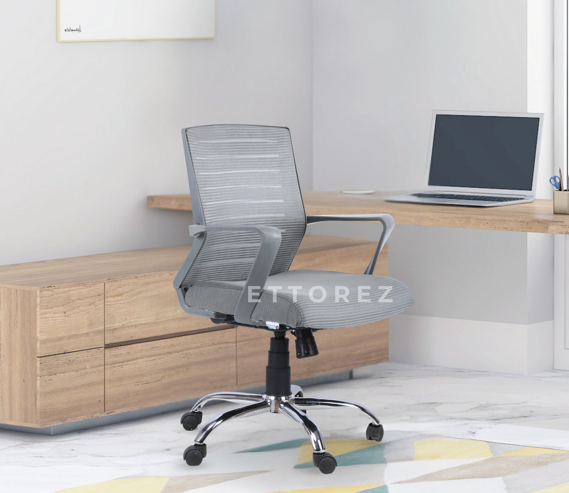 Ettorez NEW BOOM GREY Mid Back Mesh Revolving Chair with Fixed Armrest