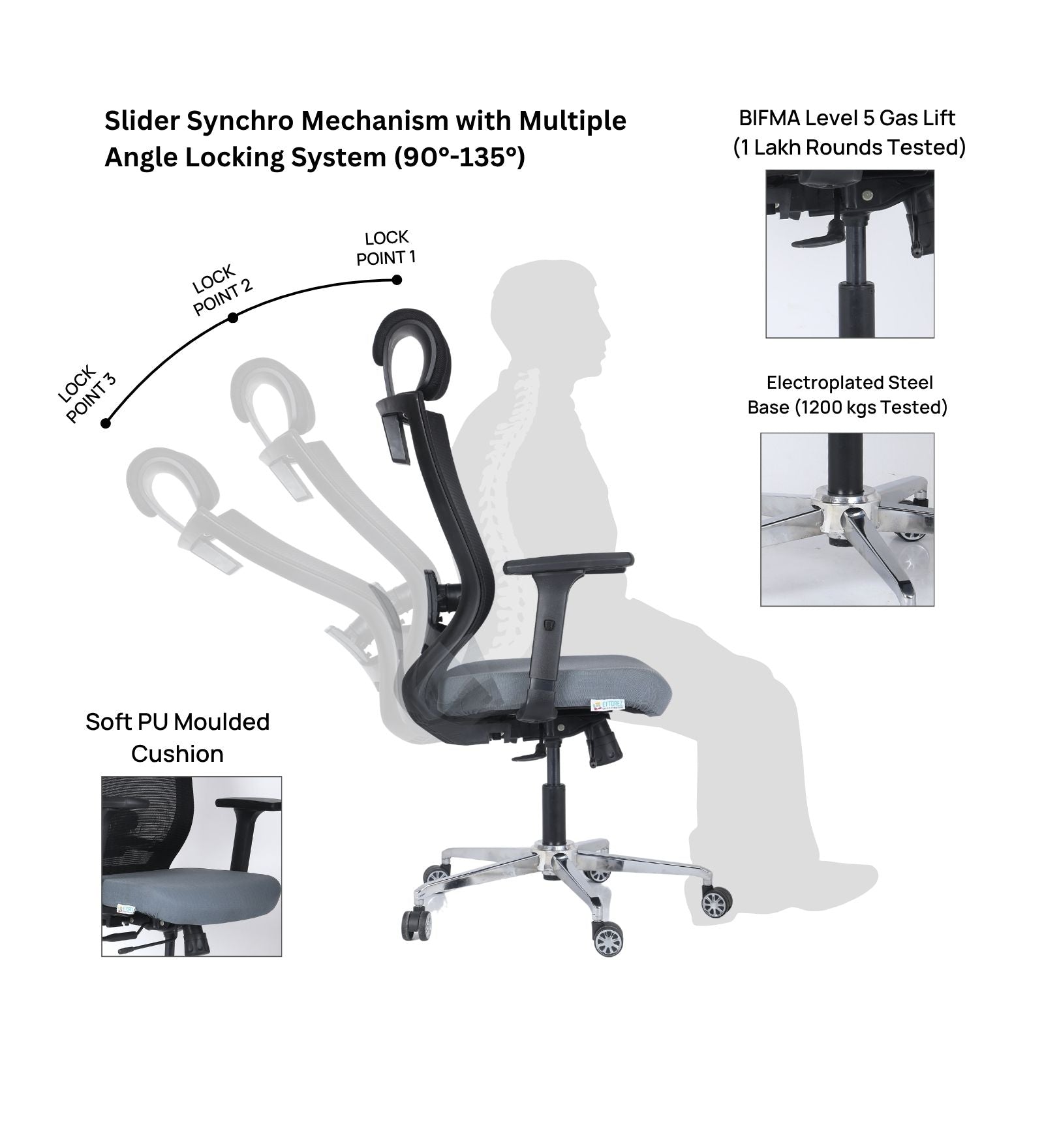 Ettorez OMEGA Black High Back Ergonomic Office Chair
