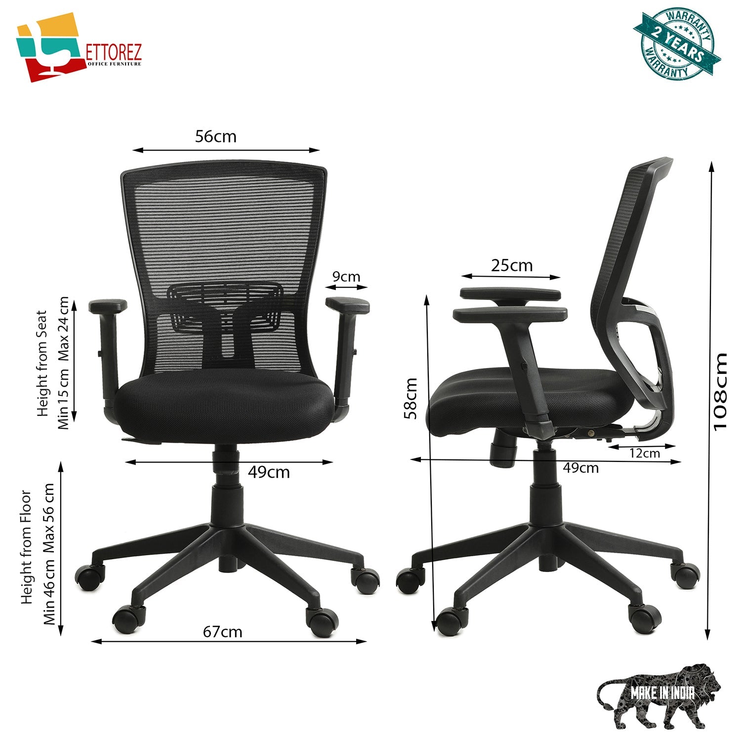 | Customization | Yes (Seat Fabric can be customised) | Ideal User's Height Reference | 5'0"-5'8" | Ideal User's Weight Reference | 40-90kg |