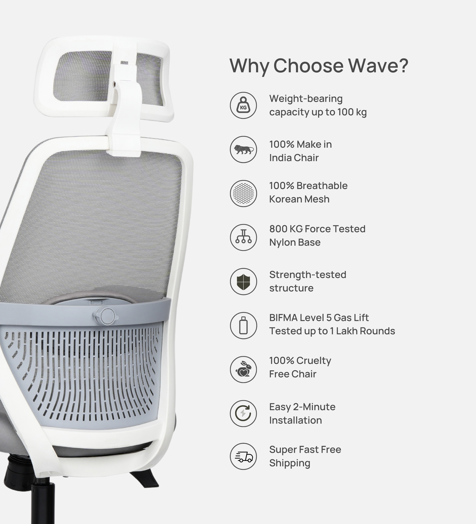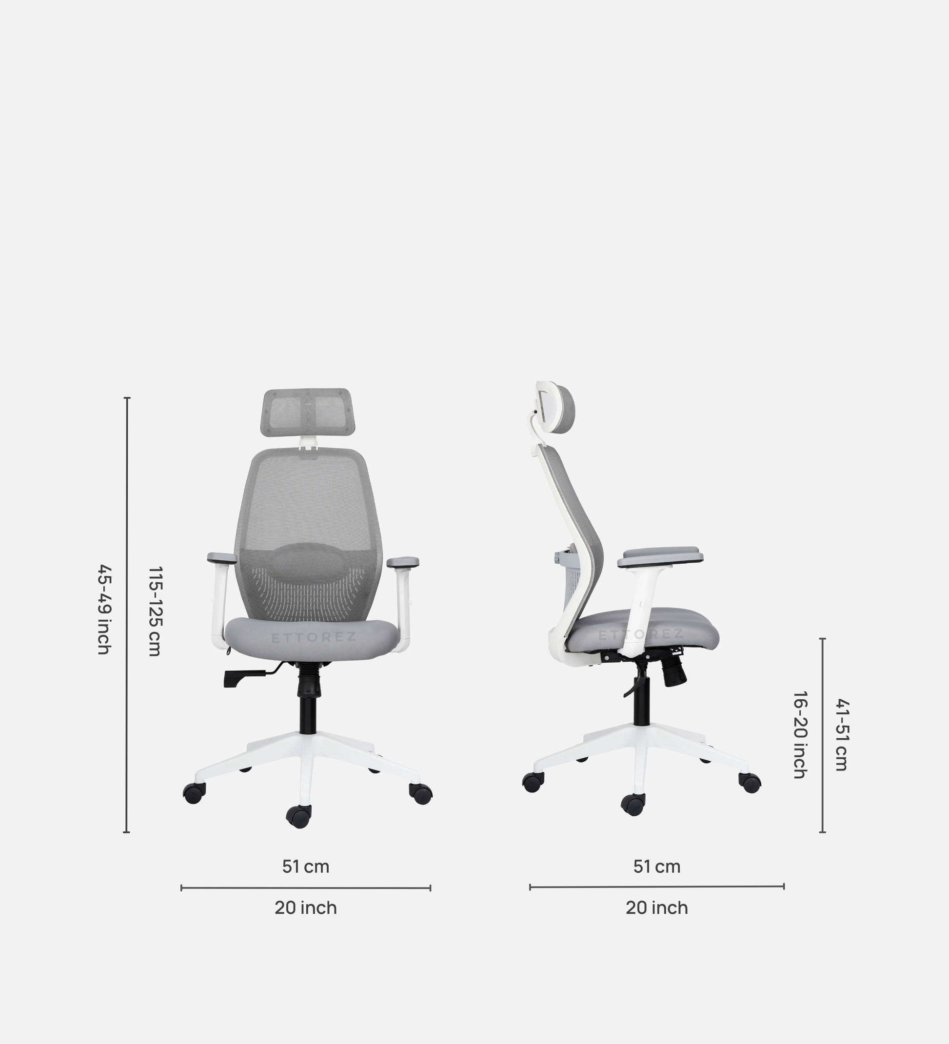 Ettorez Wave Ergonomic Office Chair- Grey