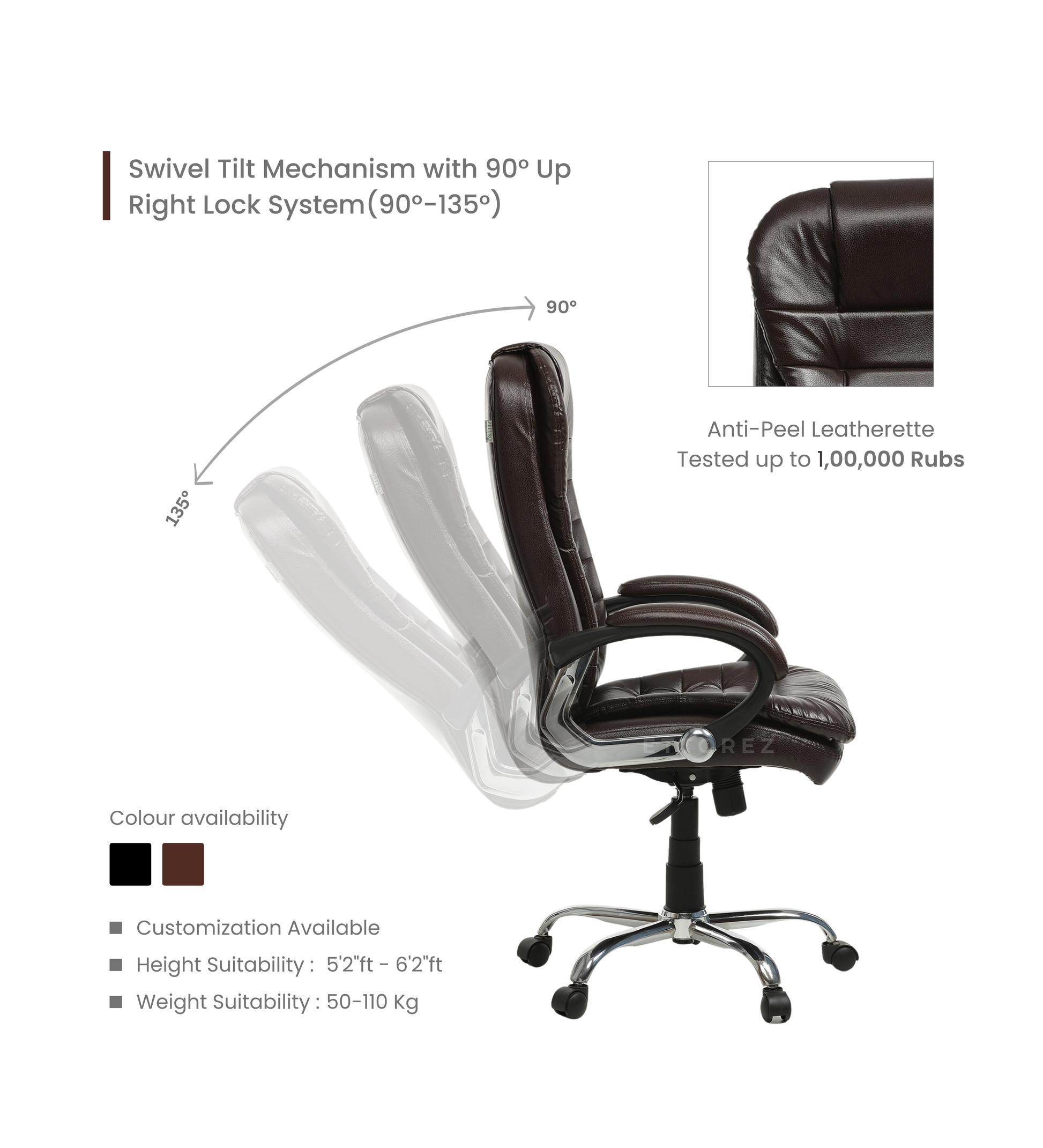 Ettorez VANITY HB Brown Premium Leatherette High Back Chair